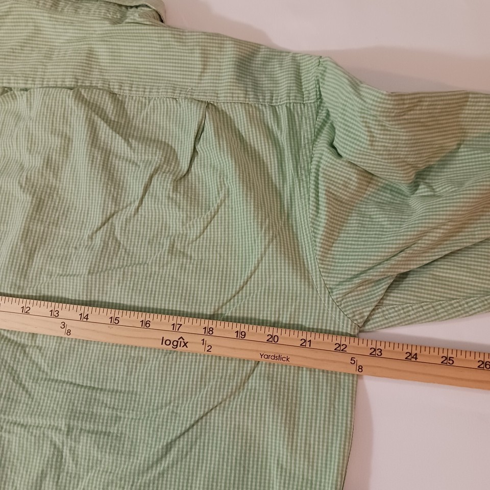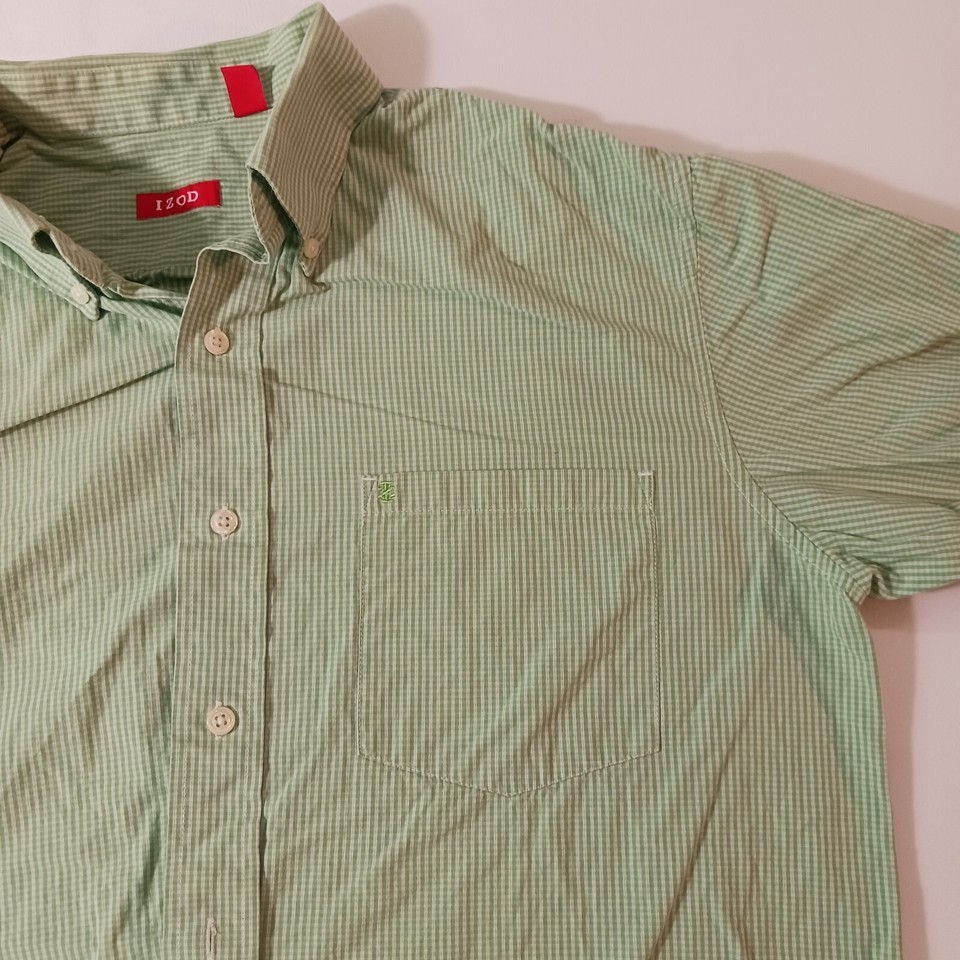 Elevate your wardrobe with this stylish Izod Men's Cotton Green Check Button-Down Collar Long Sleeve Shirt in Size Medium. Perfect for any occasion, whether it's for travel, casual outings or business meetings, this shirt features a classic fit and a button-down collar style. Its green color and colorful check pattern make it a great addition to any designer or preppy outfit.