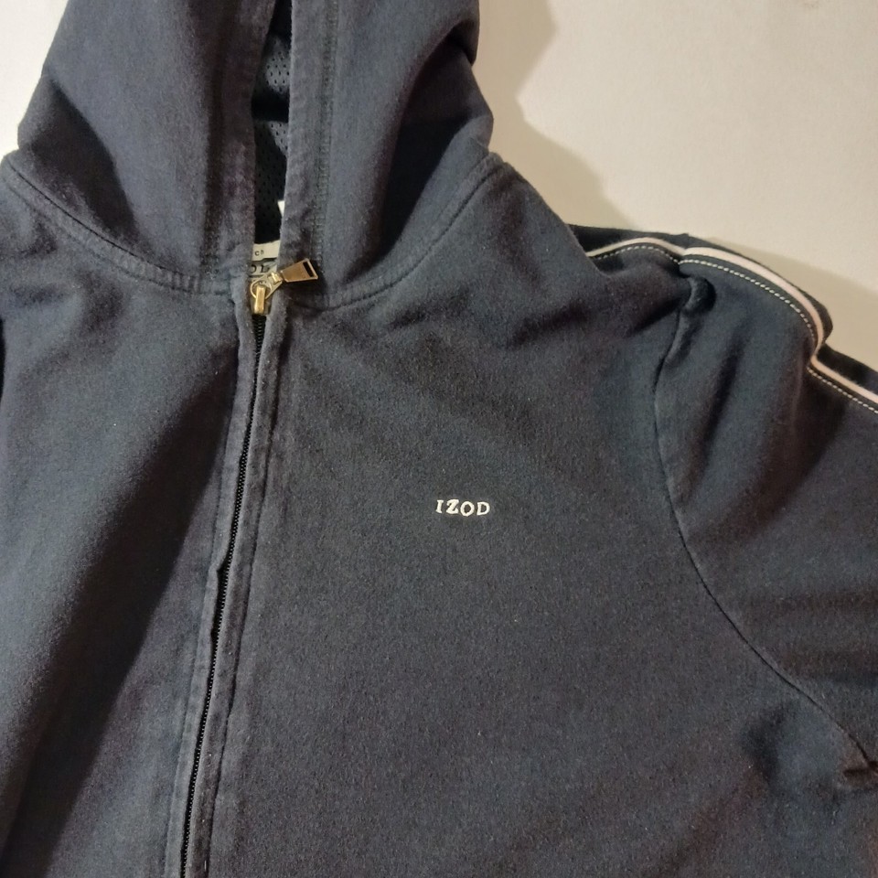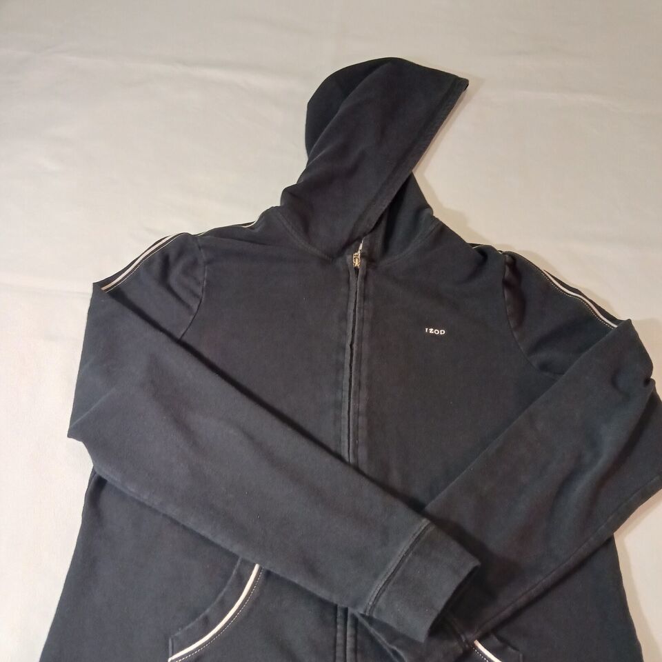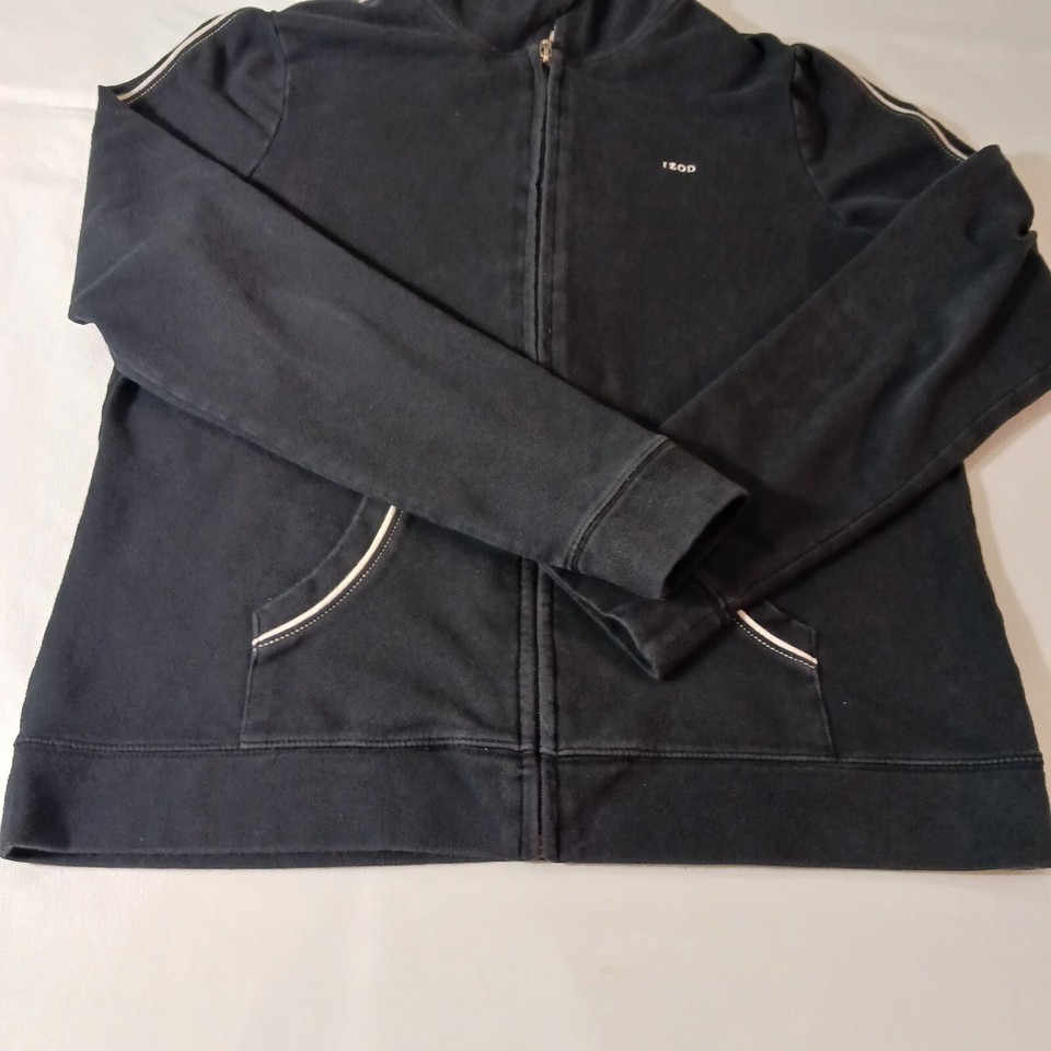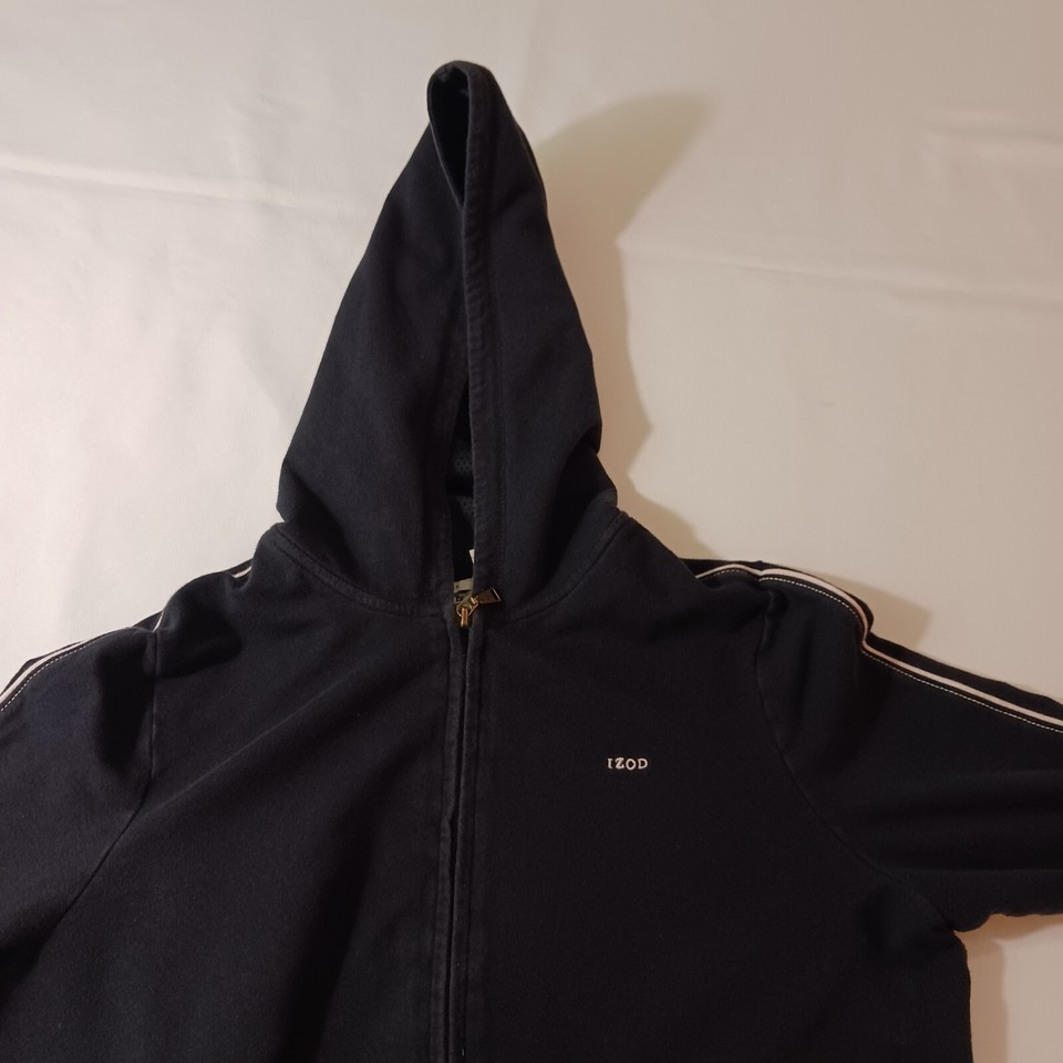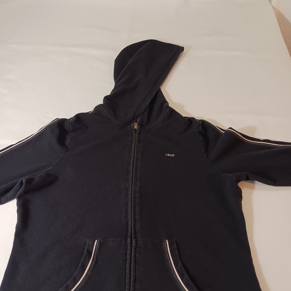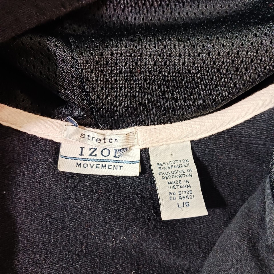 Elevate your activewear game with this stylish Izod Stretch Women's Full Zip Hoodie Jacket in size L. The black spandex and cotton blend material makes it lightweight, breathable, and perfect for all seasons. The jacket features a classic fit, long sleeves, and a full zip closure with accent zipper.