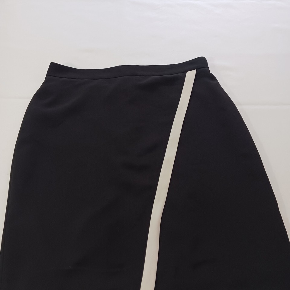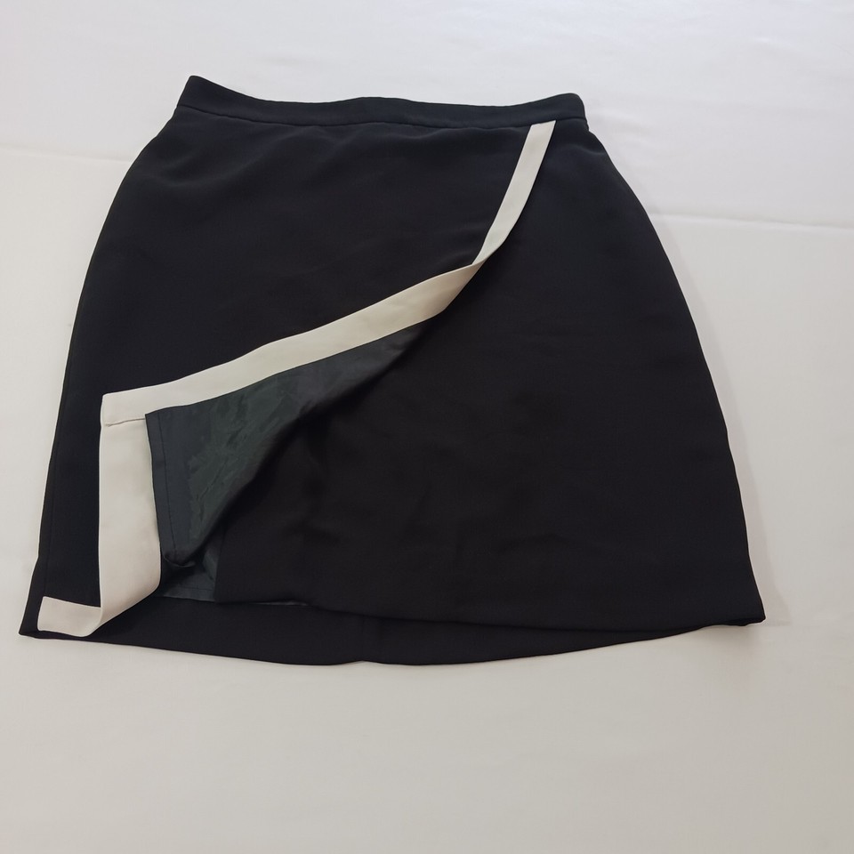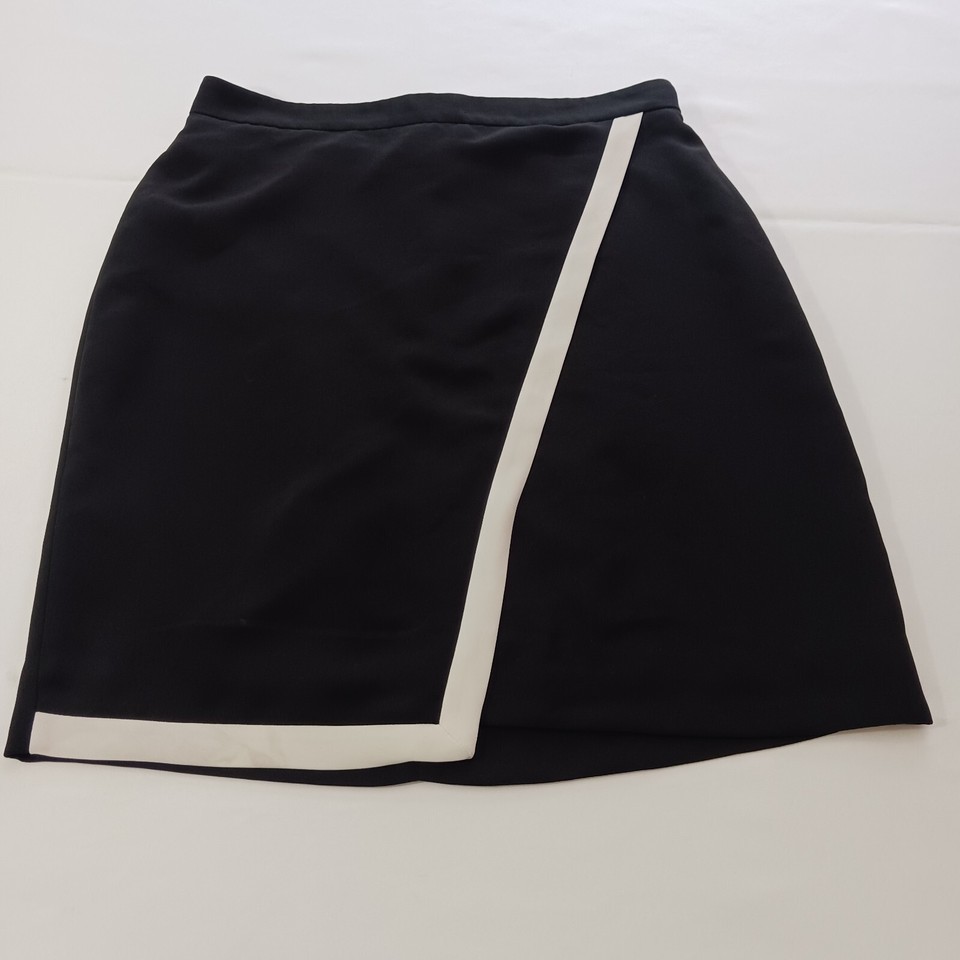 Add a pop of color to your work wardrobe with this J.CREW Women's Skirt in size 6. The skirt features a solid black color with a contrast edge in white, adding a touch of elegance to the knee-length pencil wrap style. The skirt is made of polyester and is fully lined for added comfort. Perfect for any work occasion, this skirt is sure to make a statement.
