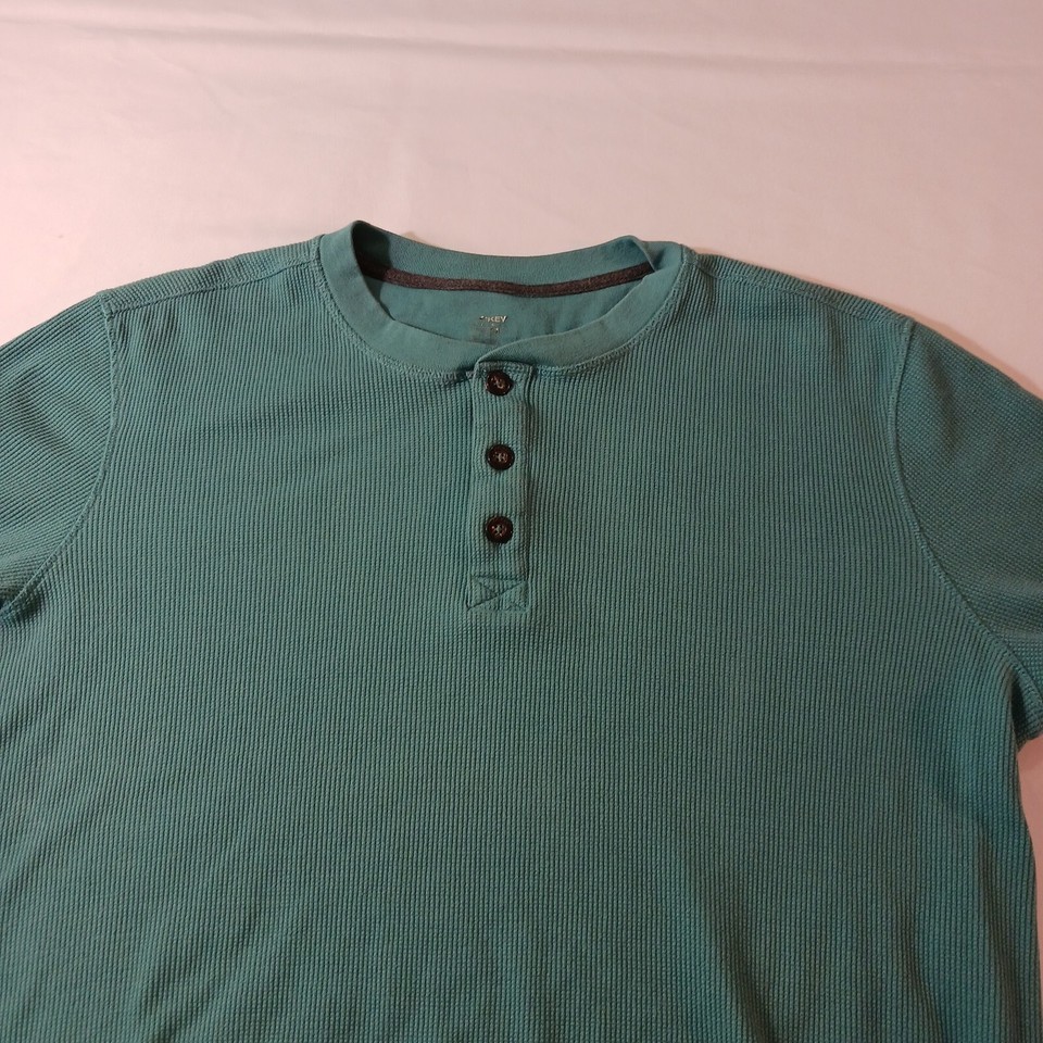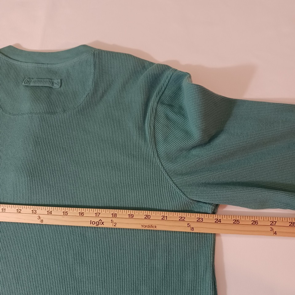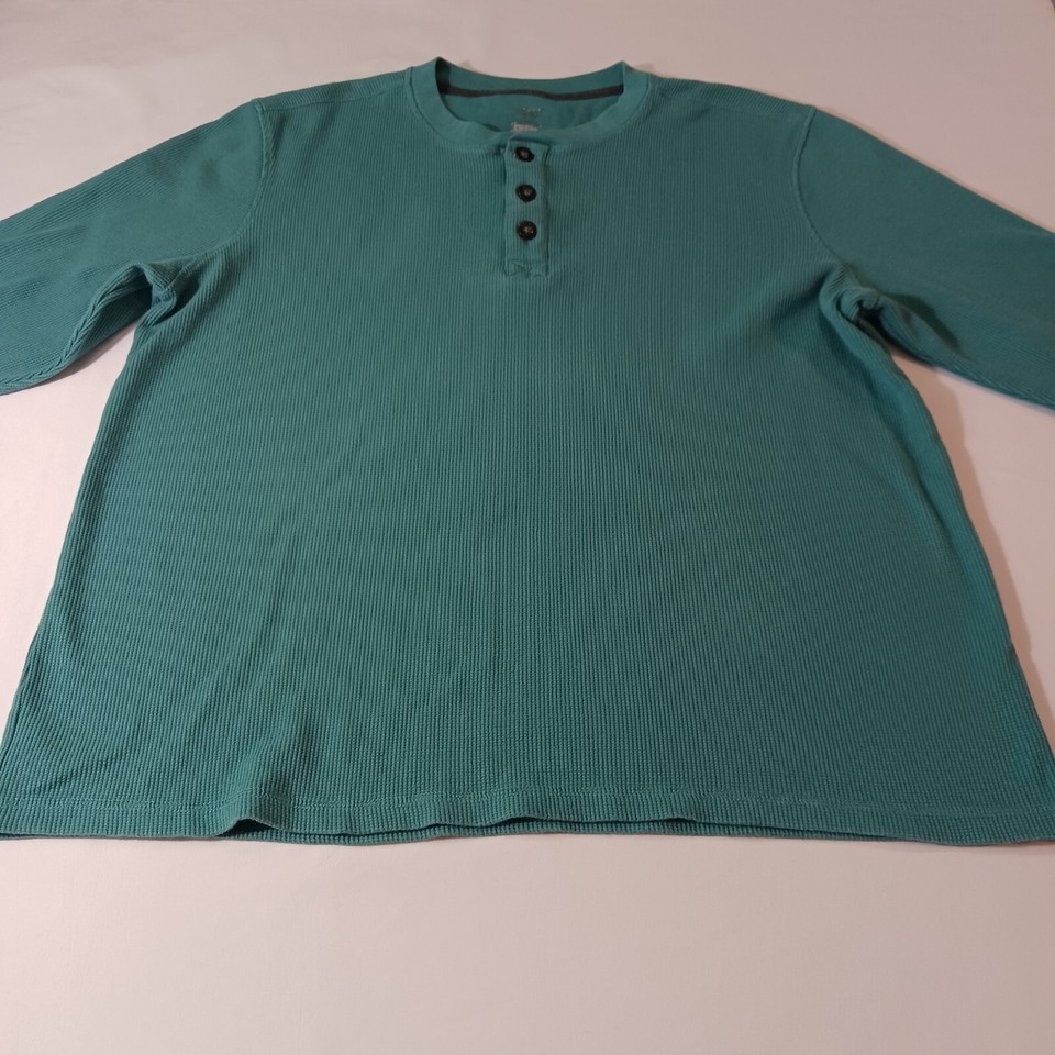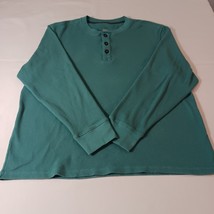 Jockey Men's Waffle Henley Green Long Sleeve Cotton T-Shirt Measured Chest 48"