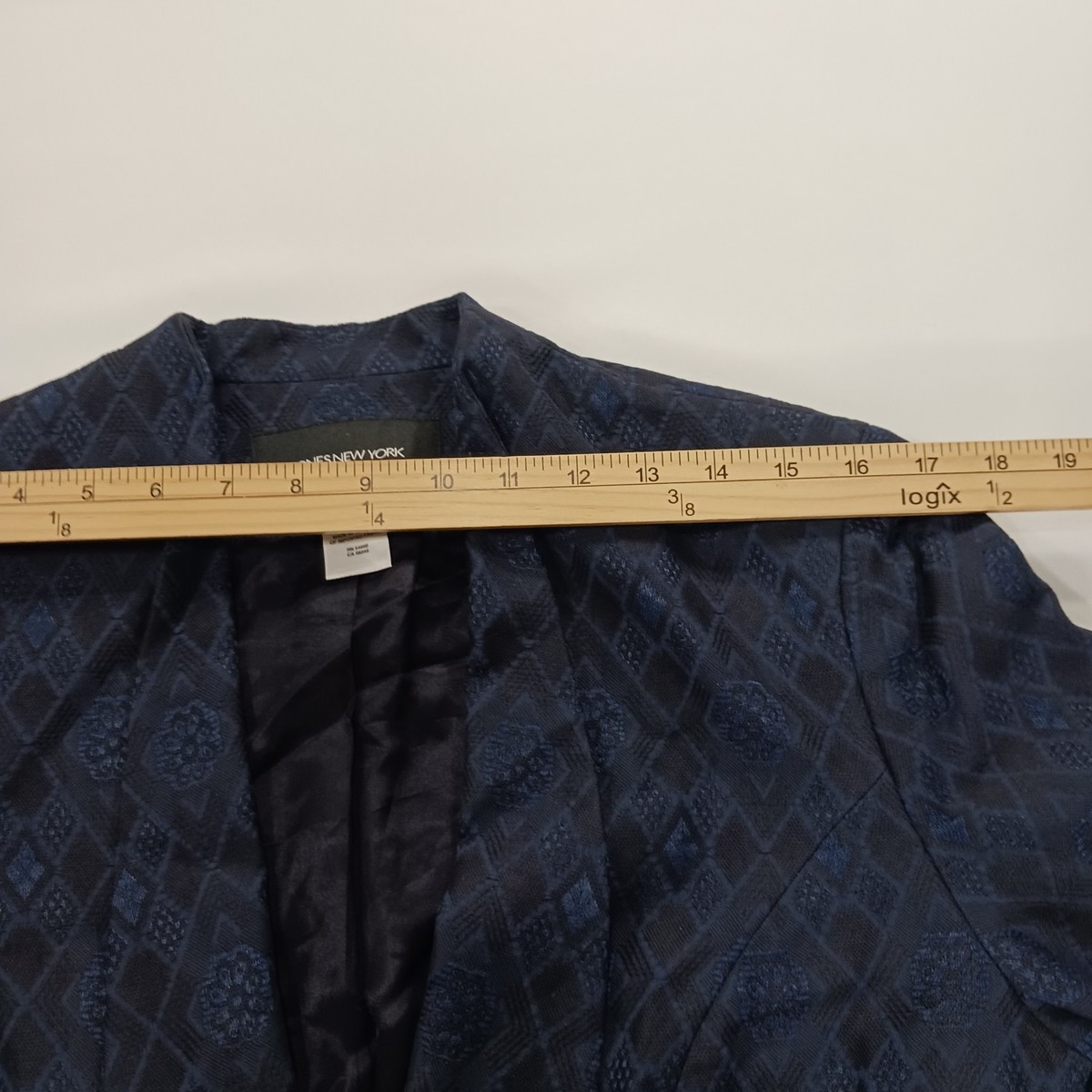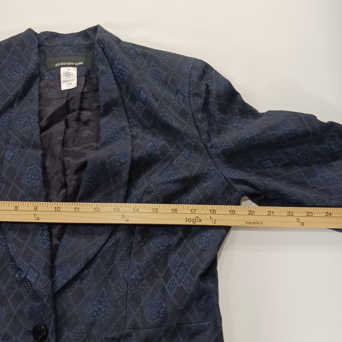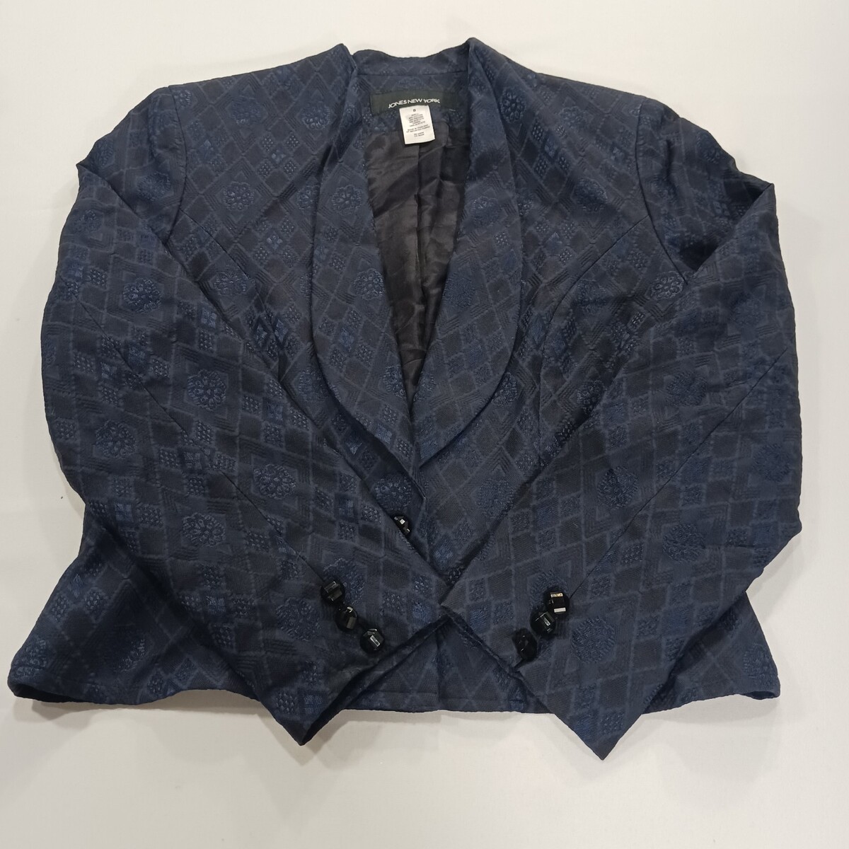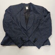 The Jones New York RN#54050 Women's Blue/Black One-Button Blazer Jacket in Size 8 is a classic and stylish piece perfect for business occasions. Made from a blend of viscose, acetate, and cotton, this jacket features long sleeves, a regular fit, and a lined interior for added comfort. The one-button design adds a touch of sophistication, making it a versatile option for the winter, fall, and spring seasons. Designed by the reputable brand Jones New York, this blazer jacket is sure to add a chic and polished element to any woman's wardrobe.