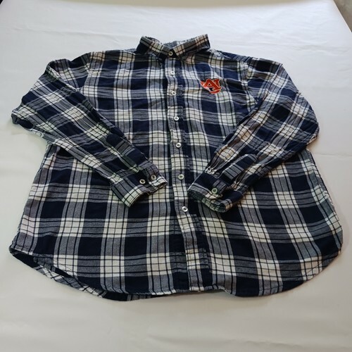 Show your support for Auburn University with this KA Knights Apparel blue cotton plaid shirt. With long sleeves and a size of L, it's perfect for any fan looking for a comfortable and stylish way to show their team spirit. Made in Bangladesh and featuring the iconic Auburn University logo, this shirt is a must-have for any college sports enthusiast. Whether you're cheering on your favorite team at the game or just out and about, this shirt is sure to turn heads and make a statement.
