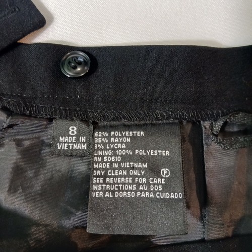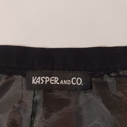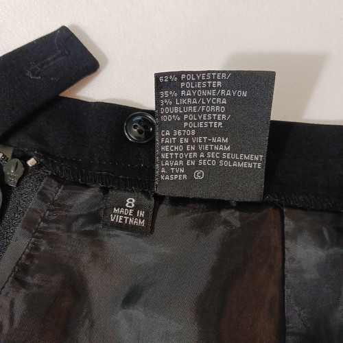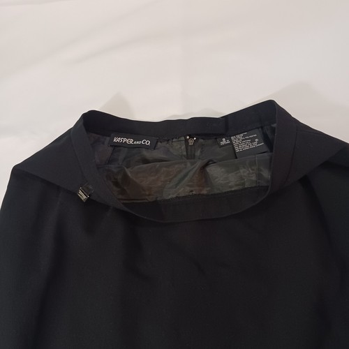 Elevate your wardrobe with this elegant and classic black skirt from Kasper & Co. The skirt features a back zip and slit design, with a straight and pencil style that is perfect for any occasion, whether it's a party, workwear, or business attire. Made from a combination of polyester, lycra, and rayon, this skirt is both comfortable and durable, and can be easily cared for with dry cleaning.