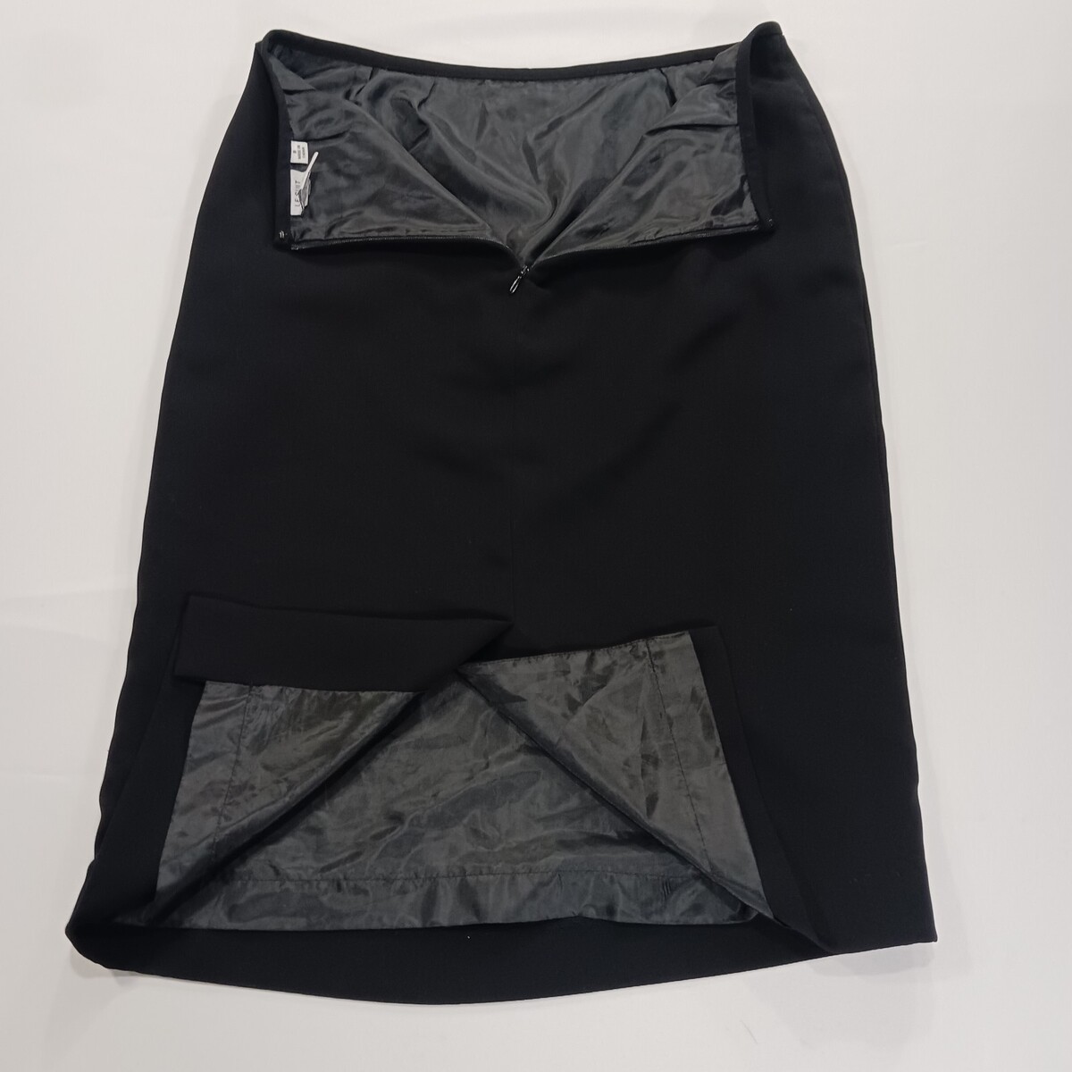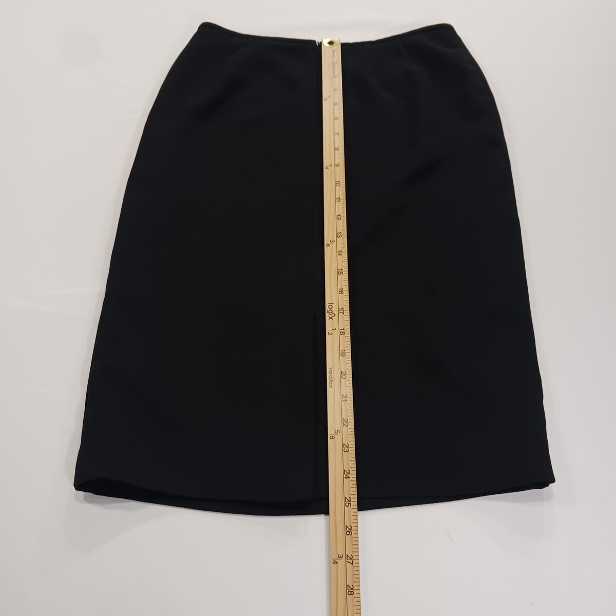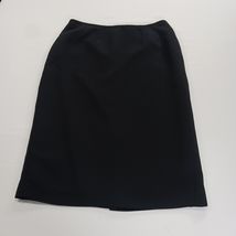 The Kasper RN#54050 Women's Black Rear Zip Pull-On Skirt in size 8 is a versatile and stylish wardrobe staple perfect for workwear and business occasions. Made of polyester with a solid black color, this A-line skirt features a convenient rear zip closure and is lined for added comfort. The skirt length of 25 inches makes it suitable for all seasons, and its classic design ensures it will never go out of style. Perfect for a polished and professional look, this skirt is a must-have for any woman's collection.