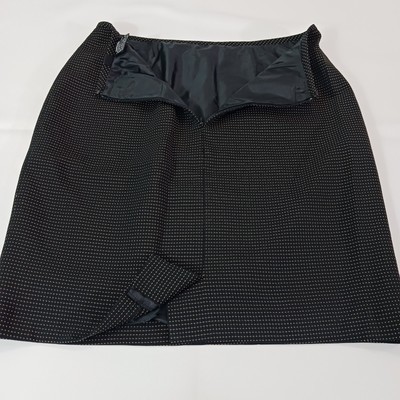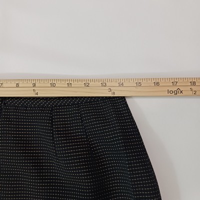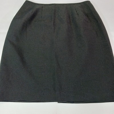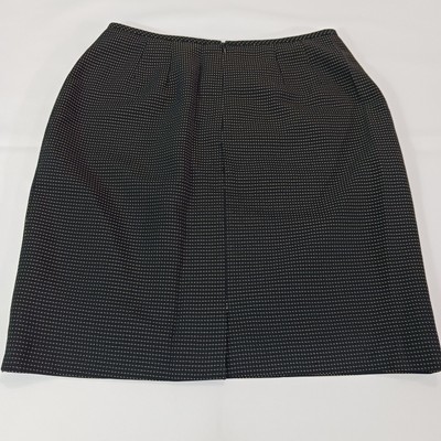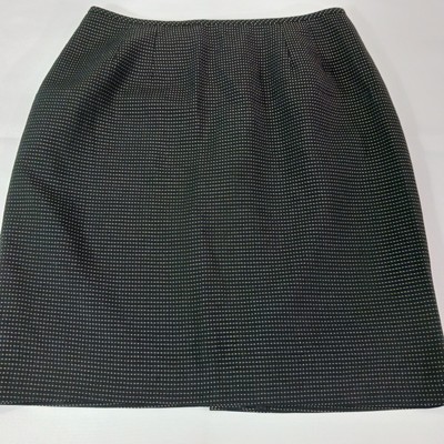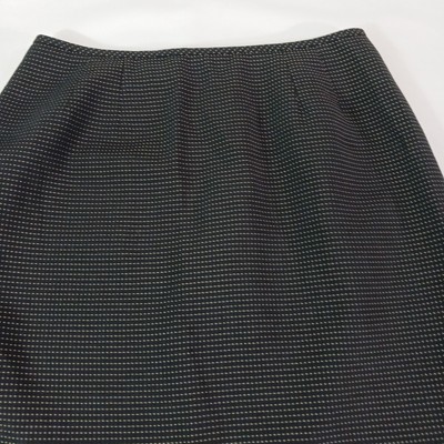 This Kasper skirt is a great addition to any wardrobe, perfect for workwear and business occasions. The black color with yellow polka dots is eye-catching and chic. The skirt is made of polyester and has a rear zipper closure for easy wear. The A-line style is flattering for all body types, and the knee-length is perfect for the office. The skirt is lined and has a vintage look, making it a unique piece. The brand is Kasper, and the skirt is available in size 8.