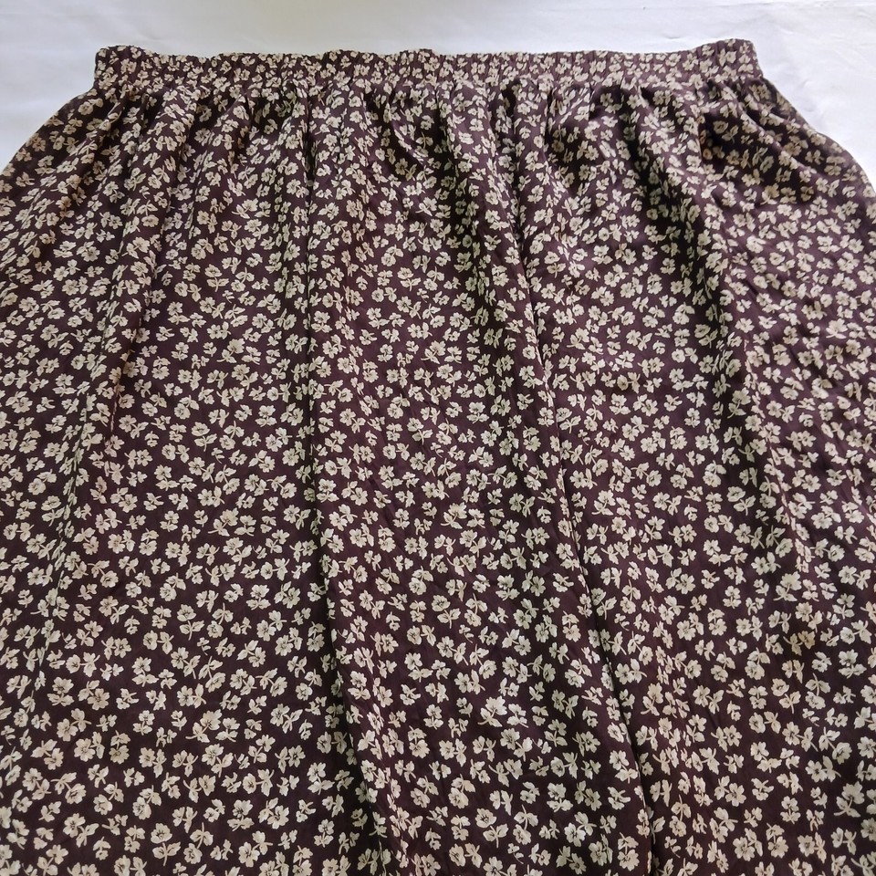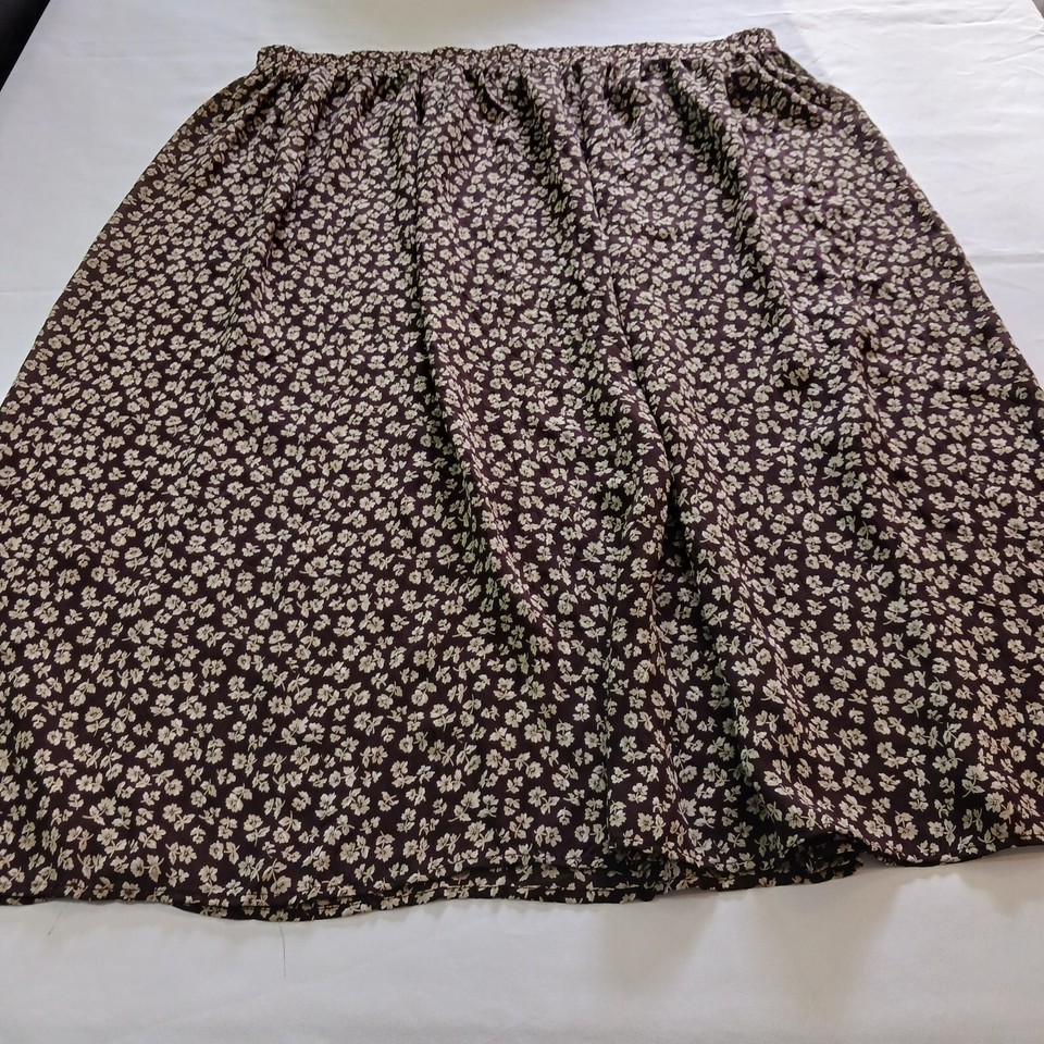 This stunning Kathie Lee skirt features a beautiful brown and white floral pattern that is sure to turn heads. With a measured waist of 42 inches, it is perfect for plus-sized women who want to look their best. The long, maxi style adds elegance and sophistication to any outfit.