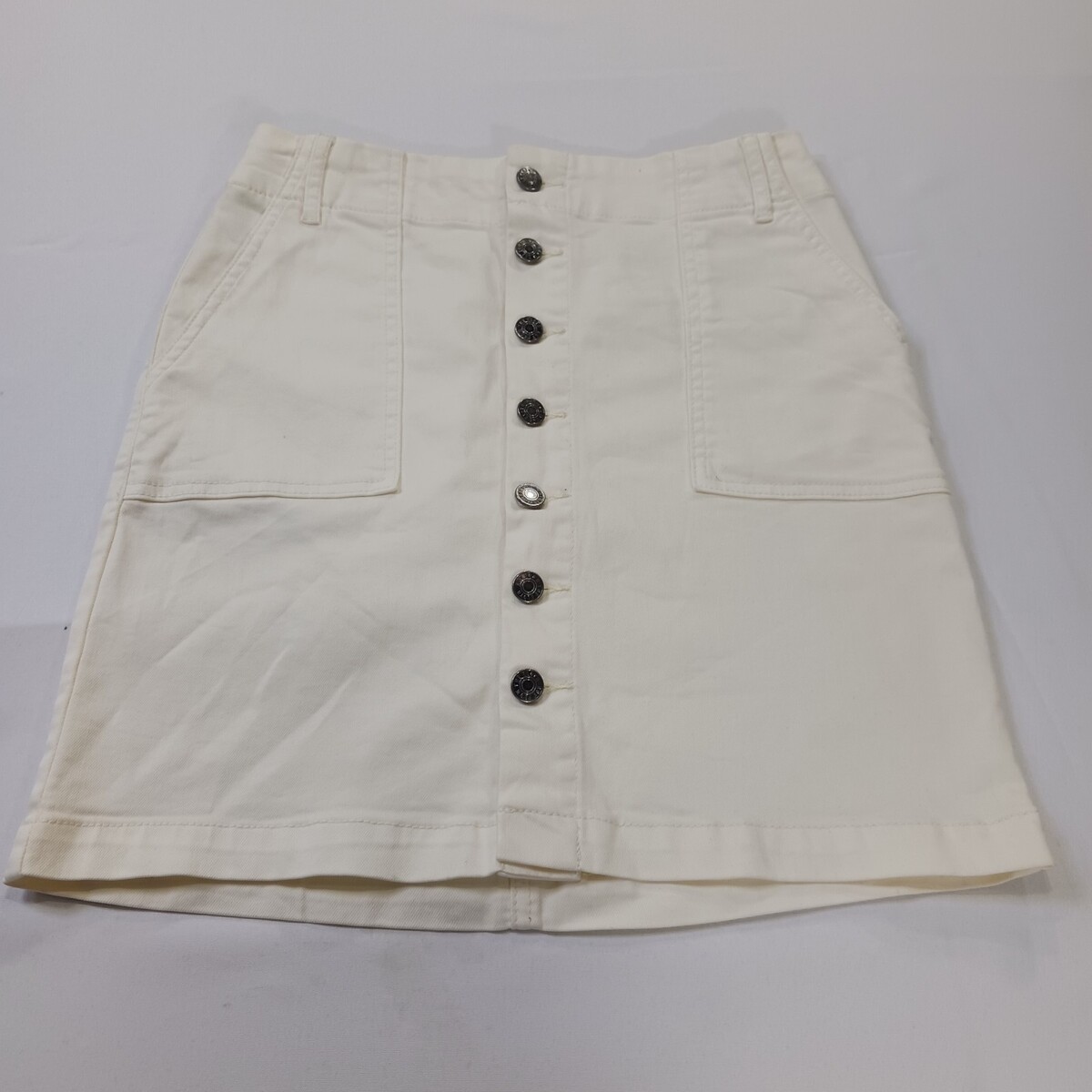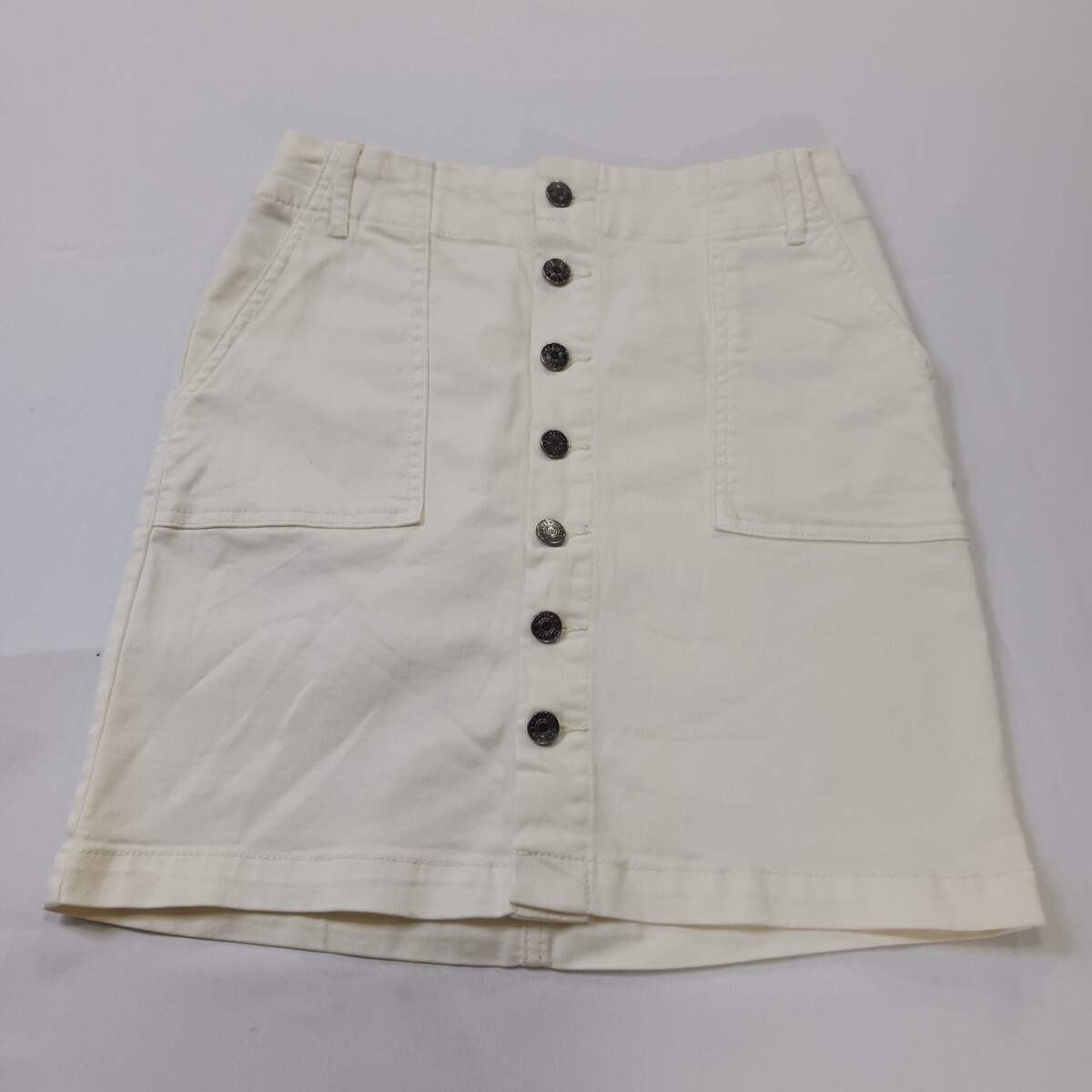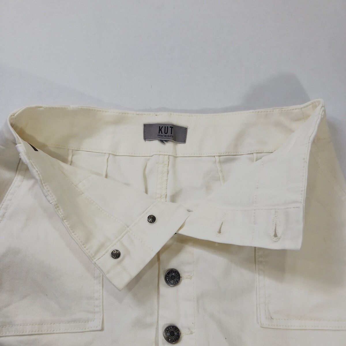 The Kut from the Kloth KK24701 Women's White Button Up Casual Denim Skirt in size 27" waist is a stylish and versatile piece perfect for the summer season. Made from a blend of polyester and cotton, this skirt features a solid white color with a button closure. The denim fabric adds a touch of durability and stretch, making it comfortable for casual occasions. The brand, KUT from the Kloth, ensures high quality and a fashionable style that is sure to add a chic element to any outfit.