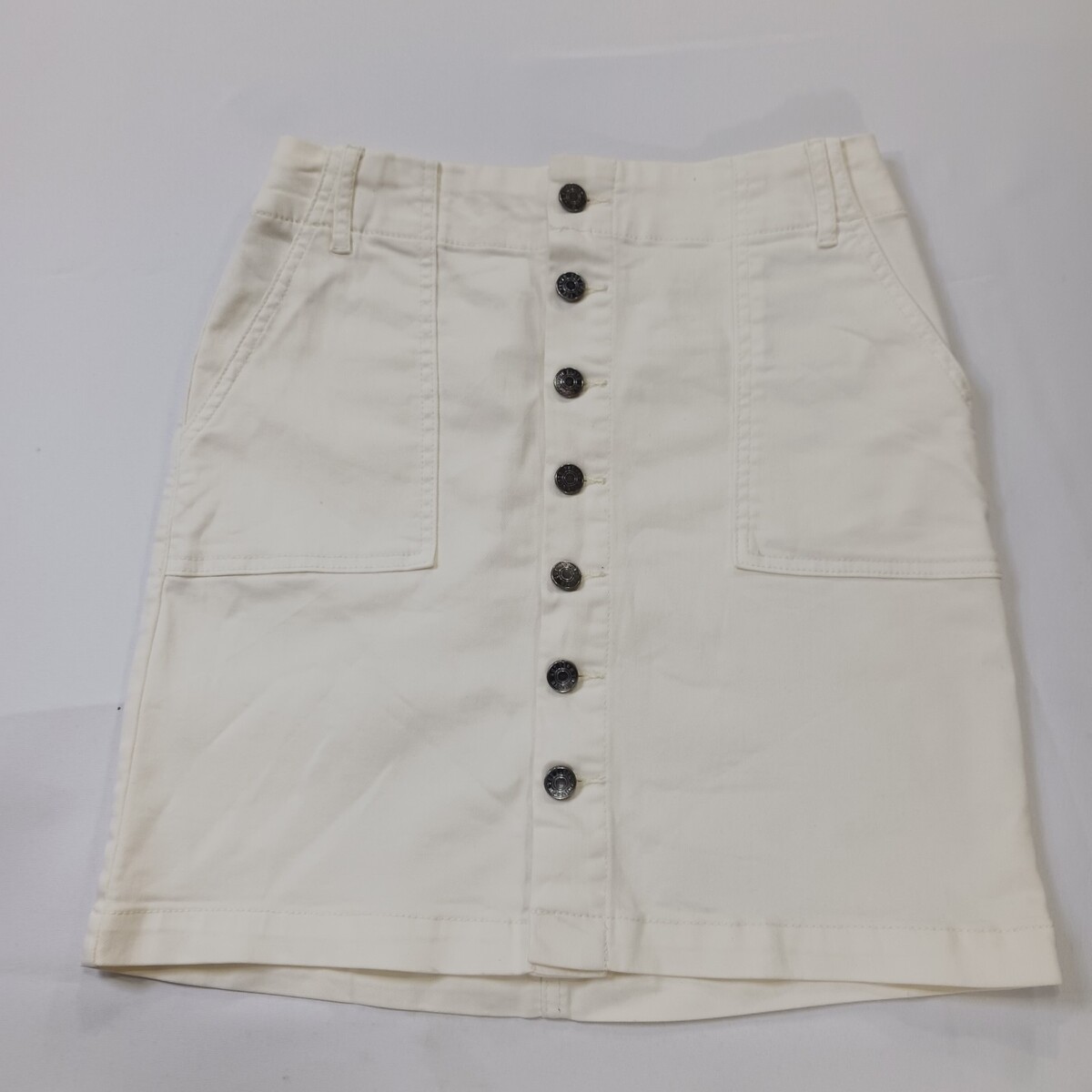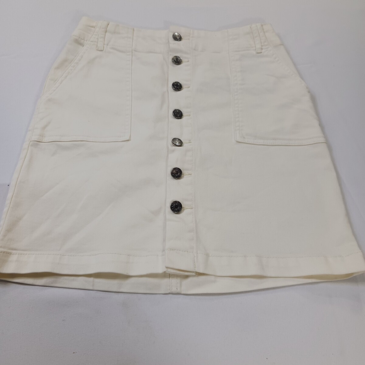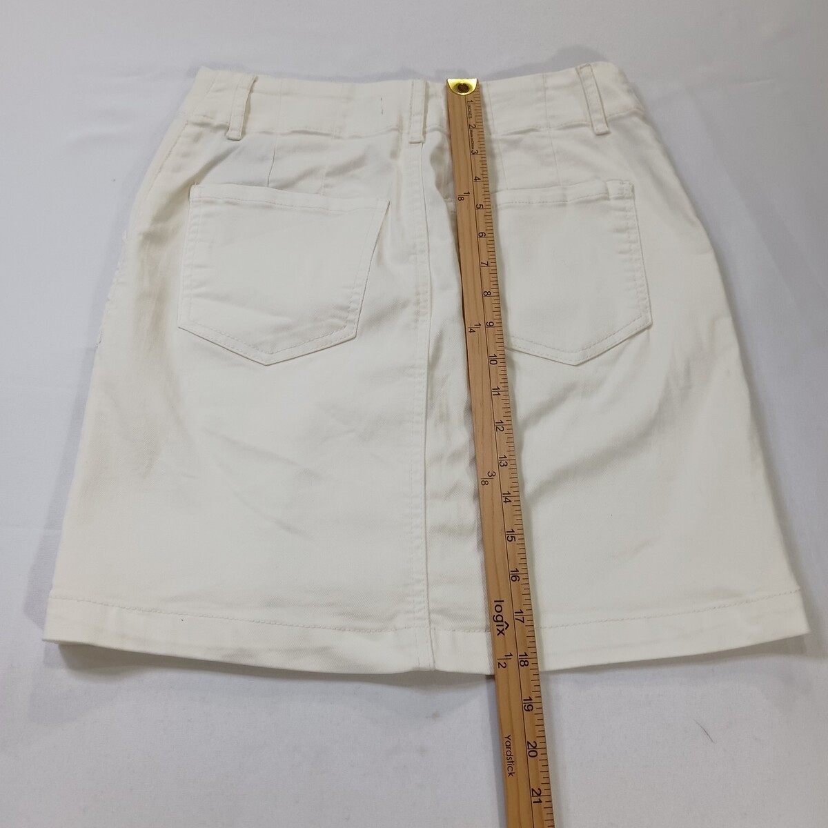 The Kut from the Kloth KK24701 Women's White Button Up Casual Denim Skirt in size 27" waist is a stylish and versatile piece perfect for the summer season. Made from a blend of polyester and cotton, this skirt features a solid white color with a button closure. The denim fabric adds a touch of durability and stretch, making it comfortable for casual occasions. The brand, KUT from the Kloth, ensures high quality and a fashionable style that is sure to add a chic element to any outfit.