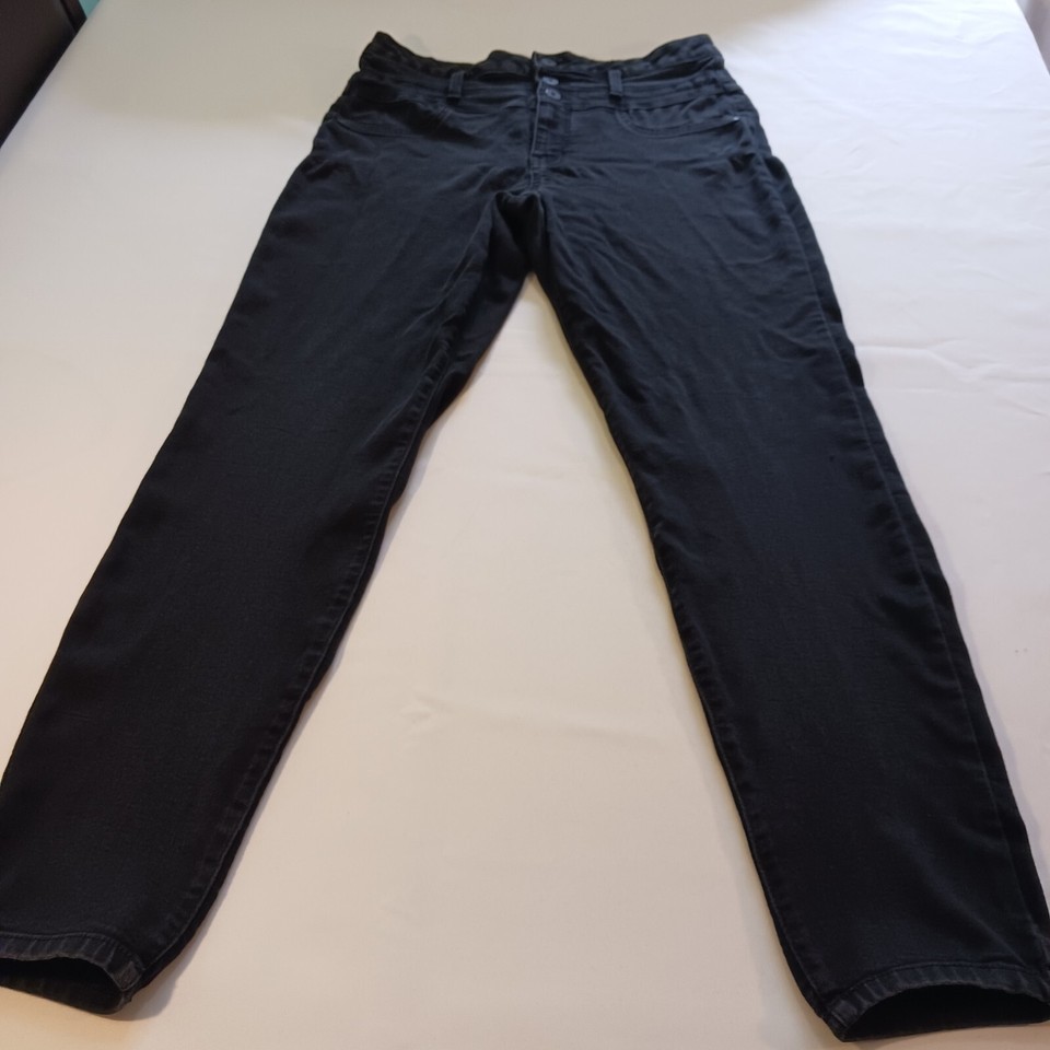 • LEI 3-Button High Waist Junior Gilrs Black Denim Jeans Tapered Legs Size 15 image 1