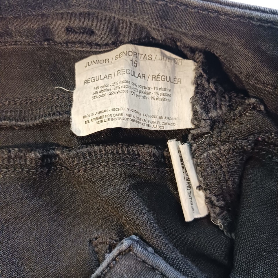 • LEI 3-Button High Waist Junior Gilrs Black Denim Jeans Tapered Legs Size 15 image 15