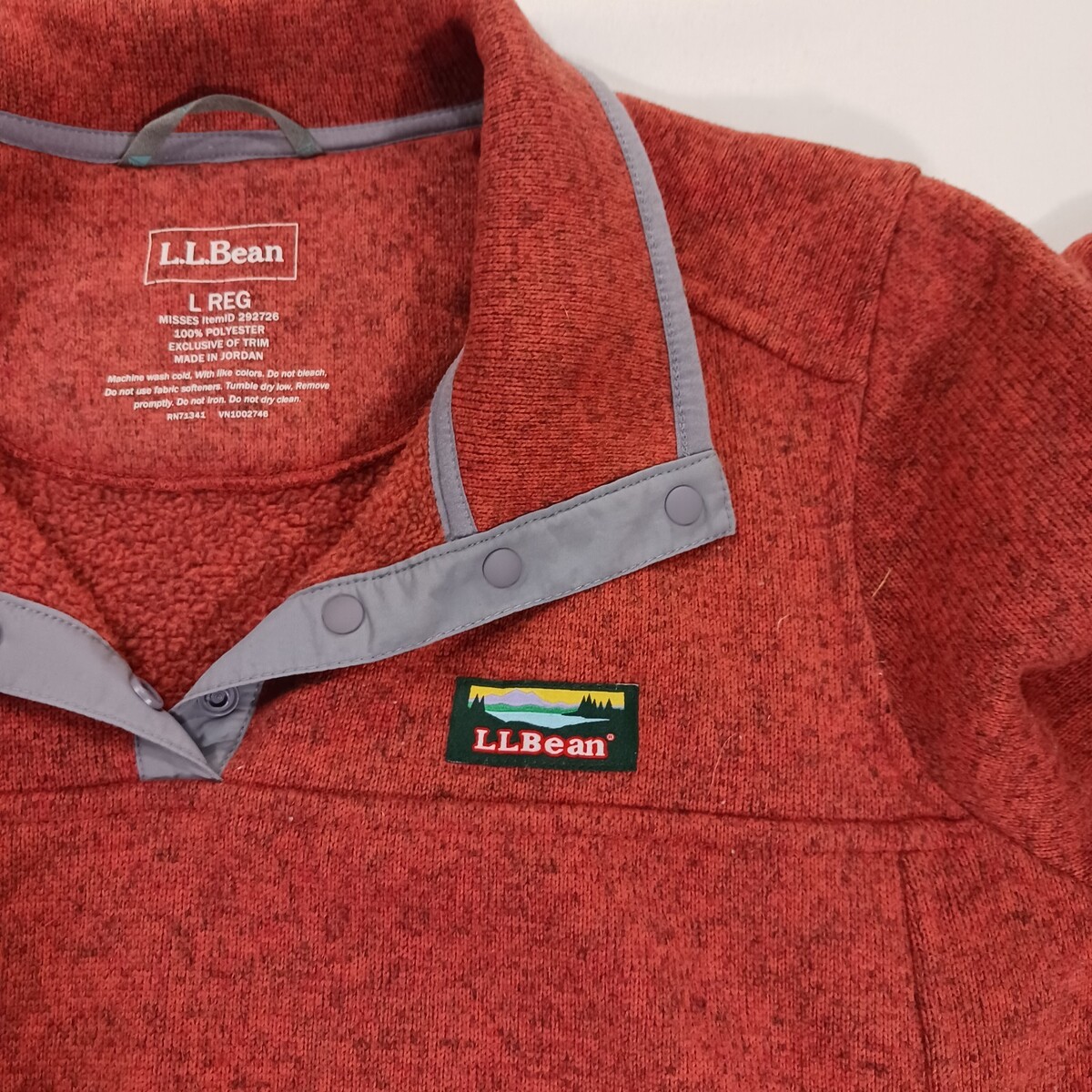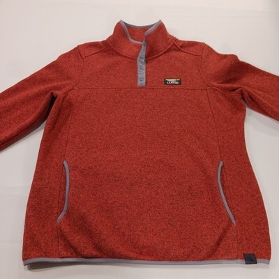 The LL Bean Men’s L Orange Sweatshirt Sweater is a stylish and versatile piece perfect for the colder seasons. Made with a cozy polyester fleece fabric, this slightly fitted sweater features a classic pullover style with a collared neckline and long sleeves. The vibrant orange color adds a pop of color to any outfit, while the 1/4 snap feature provides added warmth and comfort. Ideal for outdoor activities like walking, golf, or hiking, this sweater also has a versatile design that can be worn in various settings, from hipster to nature-inspired to classic.