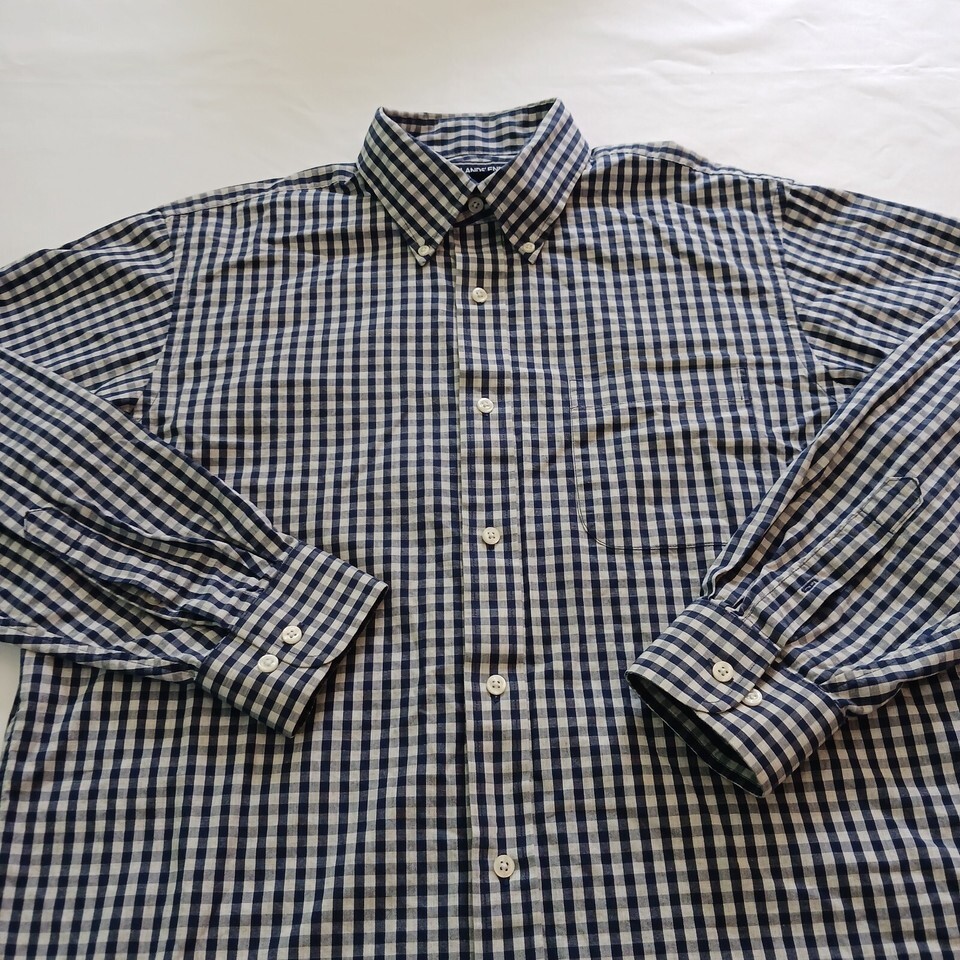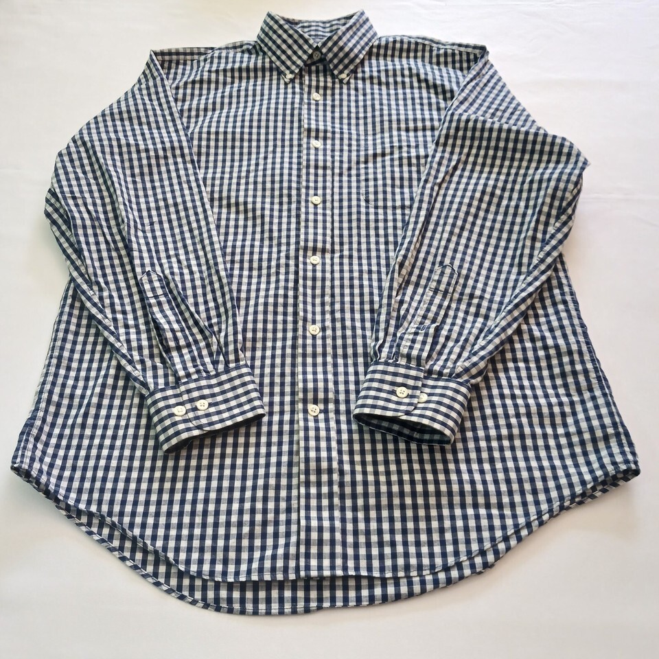 Land's End Traditional Fit Long Sleeve Men's Blue White Plaid Check Shirt 15 1/2
