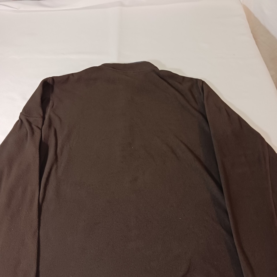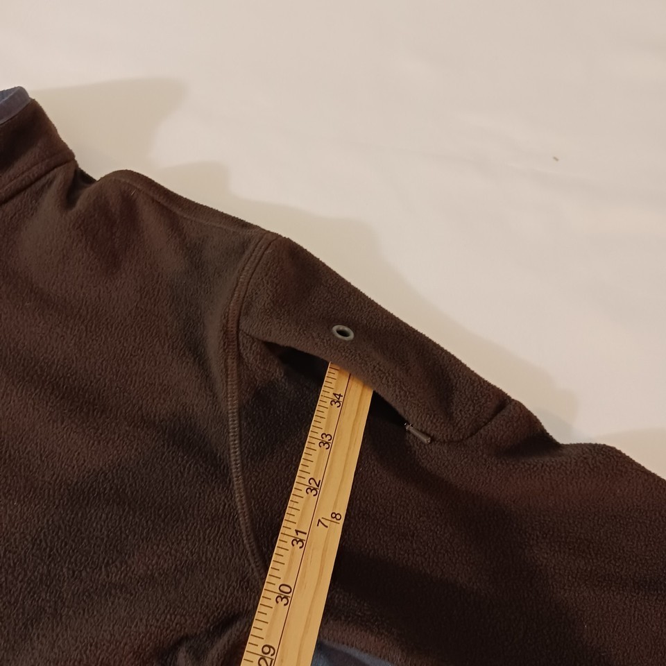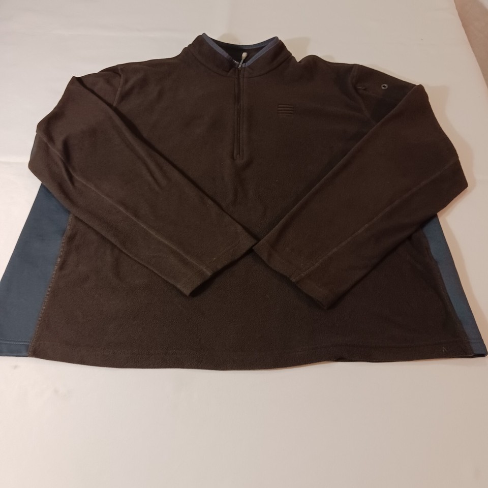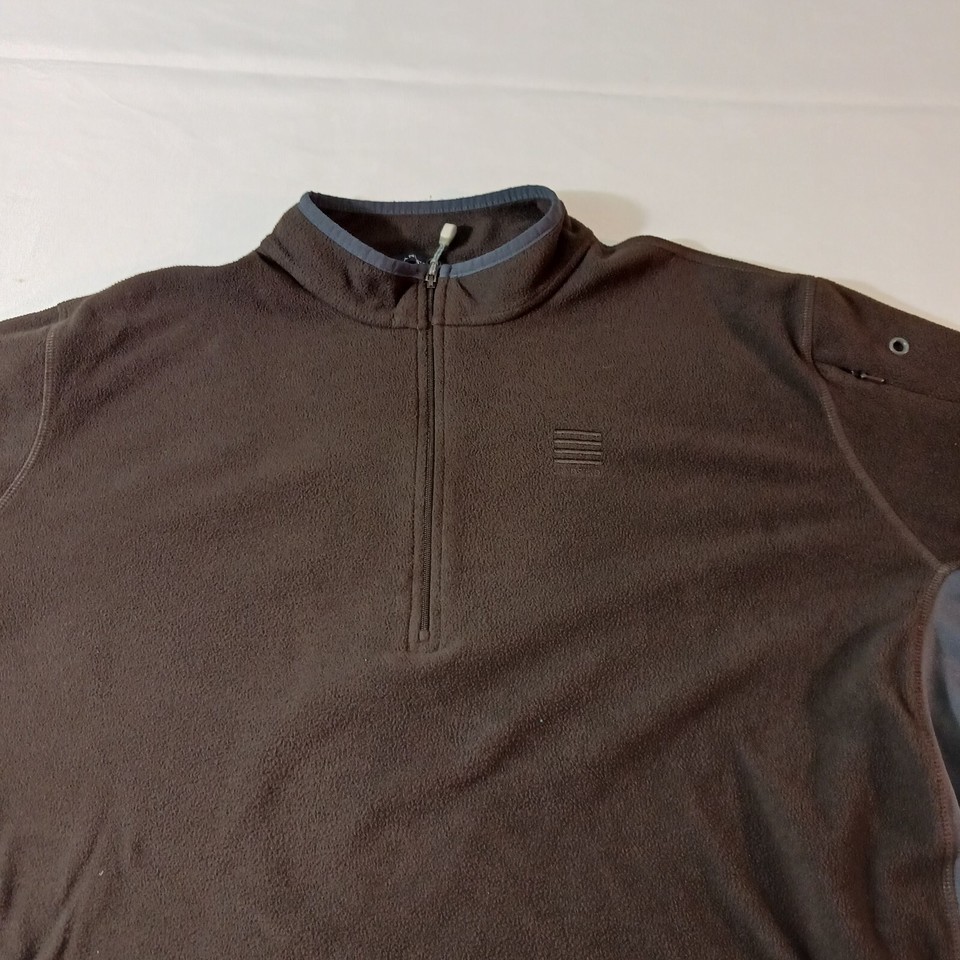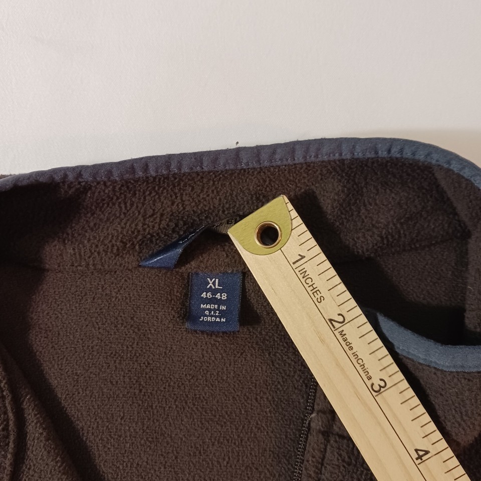This Lands' End men's sweatshirt features a collared neckline with a 1/4 zip closure and long sleeves with a regular fit. The brown/gray color sweatshirt is made of polyester fleece material, ensuring comfort and warmth. It is a size XL and perfect for any casual occasion. The sweatshirt is designed with Jordan as the country of manufacture and is categorized under clothing, shoes, and accessories for men. The title of the sweatshirt is "Lands' End Men's Brown & Gray Fleece 1/4 Zip Pullover Sweatshirt Size XL."