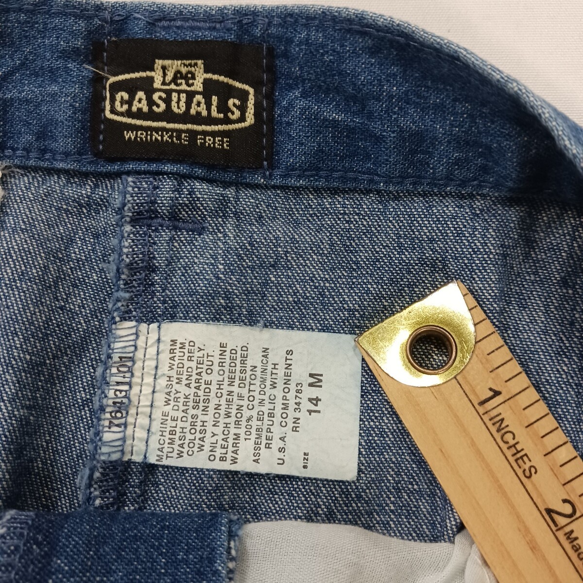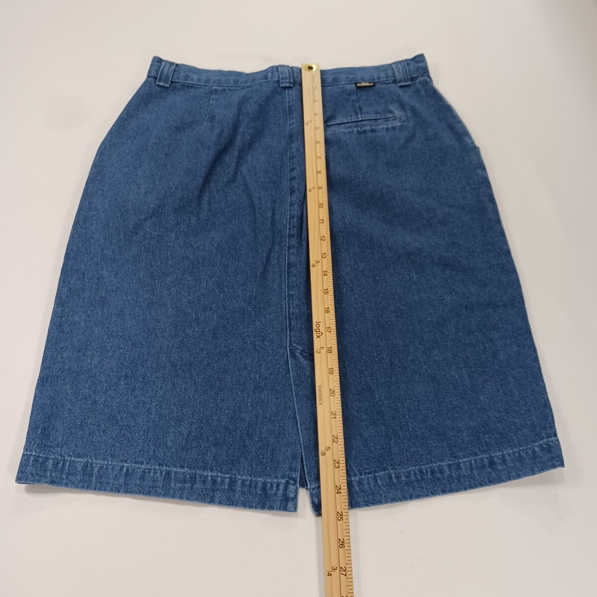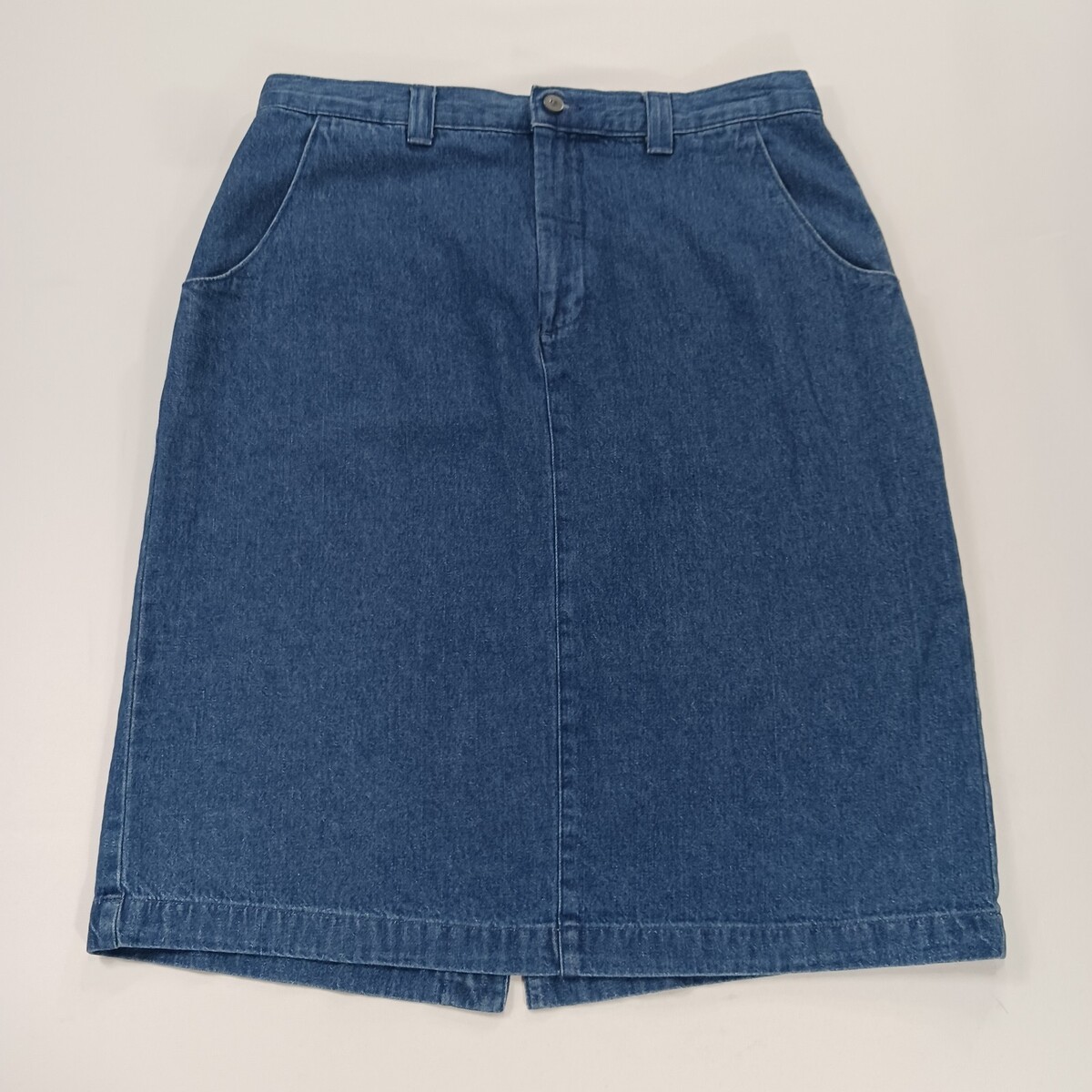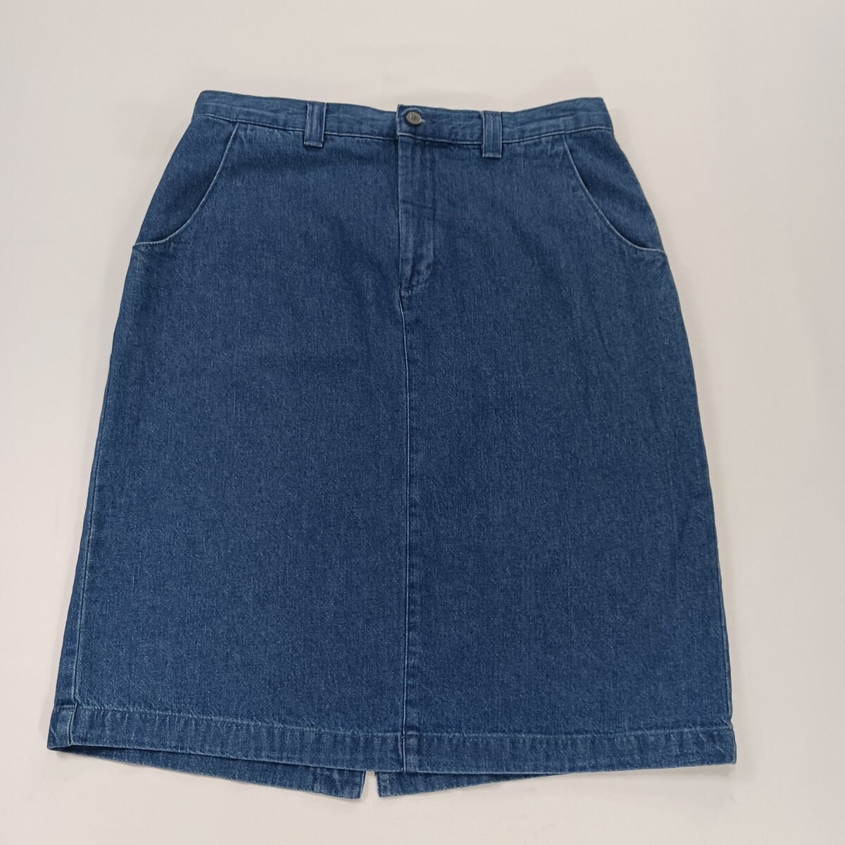 The Lee Casuals Wrinkle Free RN#34783 Women's Blue Cotton Pencil Denim Skirt in size 14M is a stylish and versatile addition to any woman's wardrobe. Made from 100% cotton denim, this solid blue skirt features a pull-on closure and a straight and pencil style. Perfect for casual occasions, it has a skirt length of 25 inches and is designed by the trusted brand Lee. Whether worn alone or paired with a top and sandals, this skirt is a fashionable choice for everyday wear.