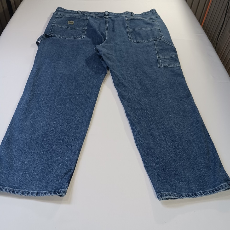 The Lee Men's Size 50×32 Blue Straight Leg Loose Fit Cargo Denim Jeans are a sturdy and comfortable pair of pants for men. These jeans feature a high rise, a straight leg style, and a loose fit in the seat and thigh, making them perfect for a relaxed and comfortable wear. With multiple pockets, including cargo and coin pockets, these jeans are both stylish and functional. Made from a blend of polyester, spandex, and cotton denim, these jeans are machine washable and suitable for all seasons. The Lee brand name and logo accents add a stylish touch to these durable and versatile pants.