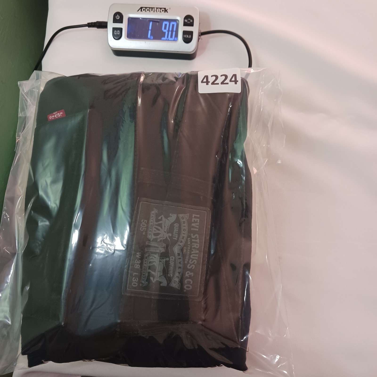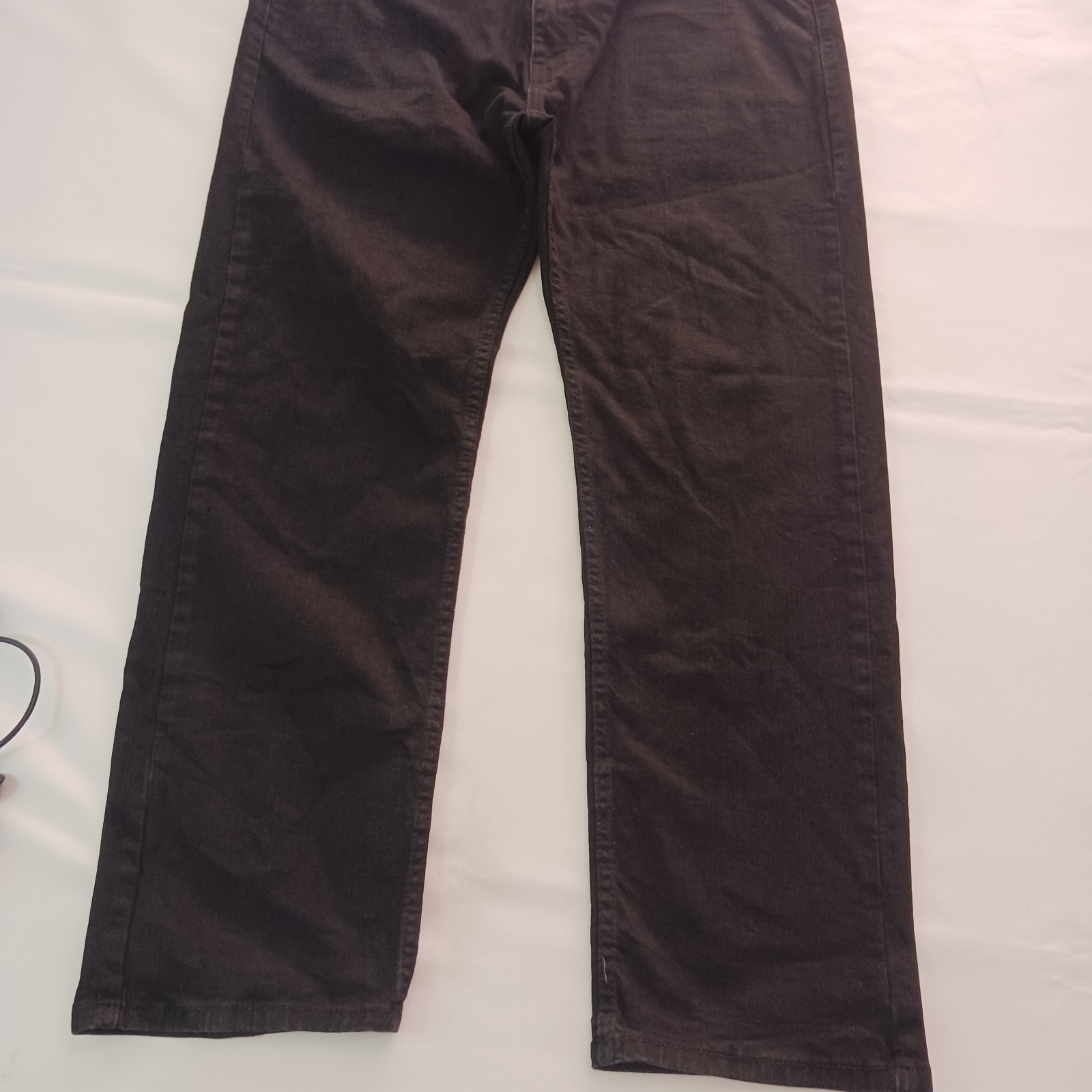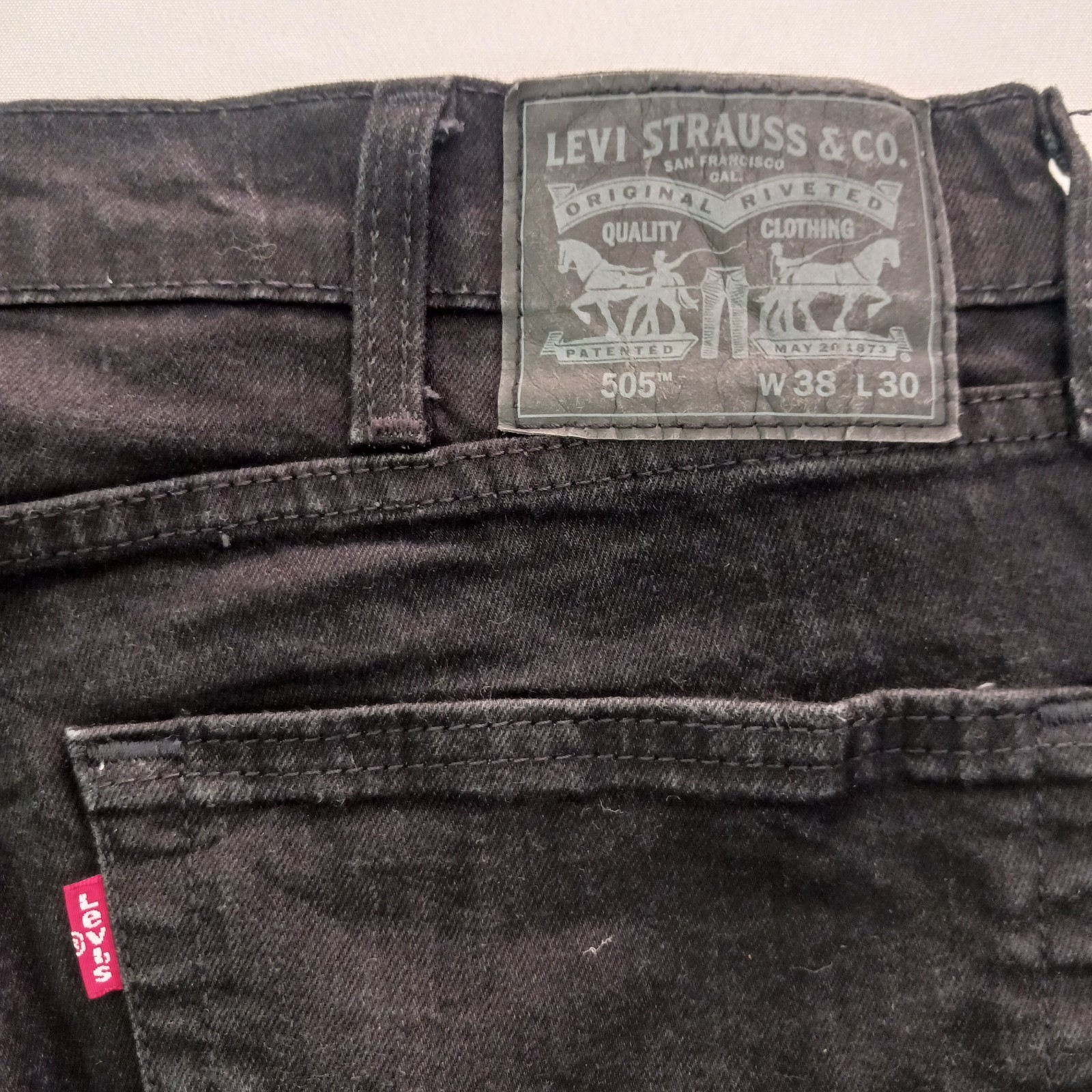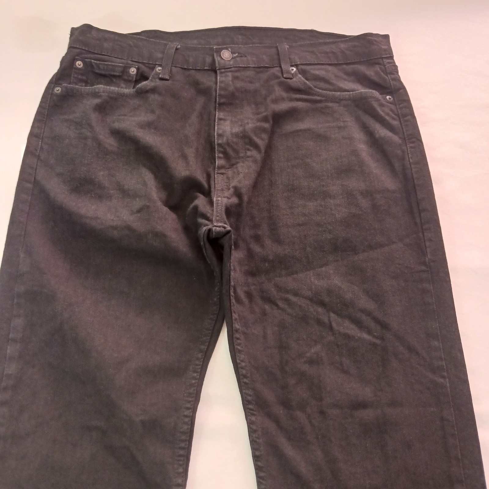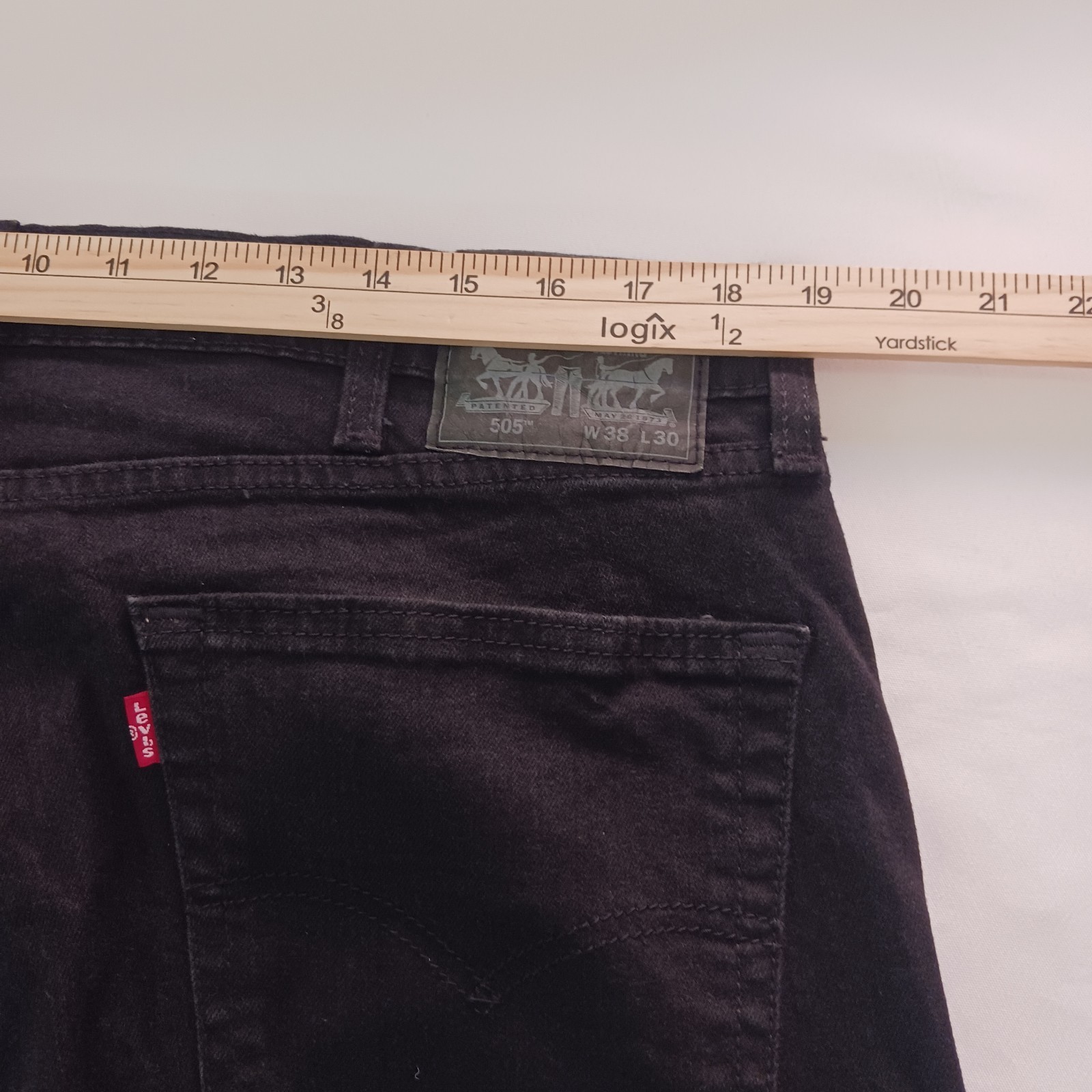 Up for sale is a pair of Levi's 505 Straight Leg Men's Black Cotton 5-Pocket Jeans in size 38W×30L. These jeans are made of a lightweight and breathable denim material with a classic fit for regular size. The waist size is 38 inches and the inseam is 30 inches. These jeans have a solid black color with a medium fabric wash. They feature a button and zipper closure, 5-pocket design, and are machine washable.
