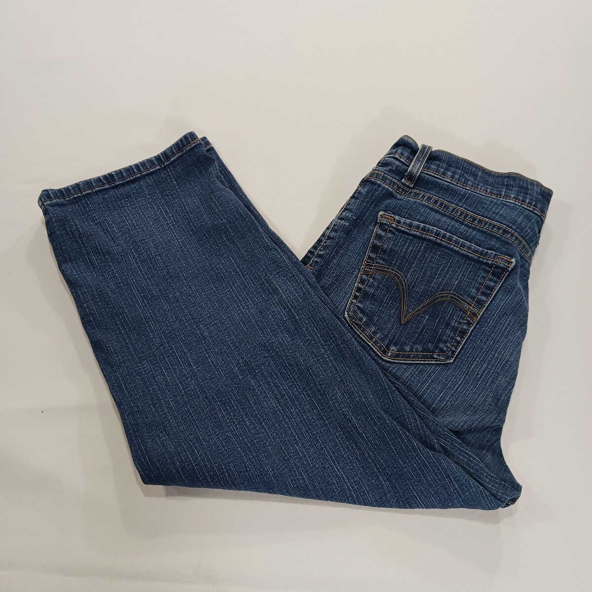 The Levi's 512 Perfectly Slimming Women's Blue Denim Cropped Jeans in size 8 feature a solid pattern with a high rise fit, making them flattering and slimming. Made from a comfortable cotton blend denim fabric and accented with buttons and zippers, these jeans are perfect for summer, fall, and spring. The cropped style adds a trendy touch, while the 5-pocket design adds functionality. With a waist size of 30 inches and an inseam of 21 inches, these Levi's jeans are a stylish and versatile addition to any woman's wardrobe.