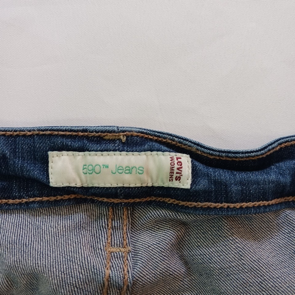 Elevate your denim game with these Levi's Women's Bootcut 590 jeans. The solid blue color and dark wash fabric give off a 90s vibe, while the high rise and regular fit provide modern comfort. The spandex, cotton, and cotton blend material with a denim fabric type offers both stretch and durability, making it machine washable and perfect for everyday wear.