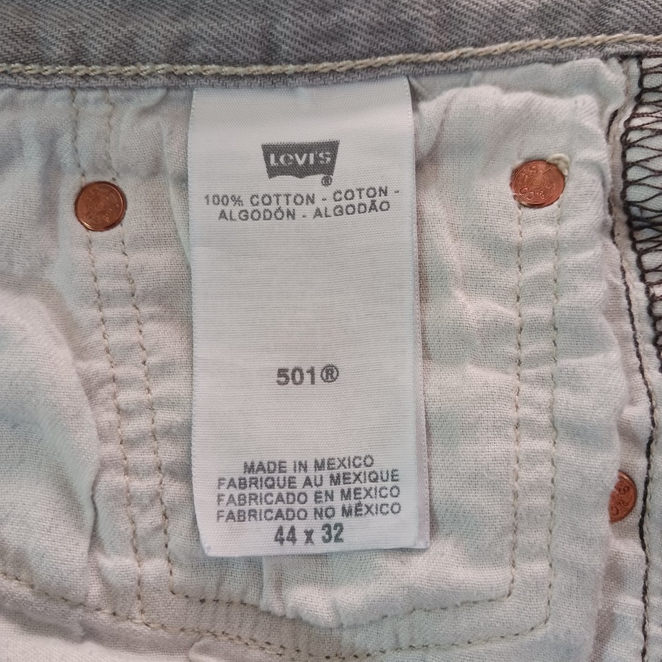 Levis 501 Men's 44x32 Fits 40×30 Gray Denim Distressed Cotton Pockets Jeans