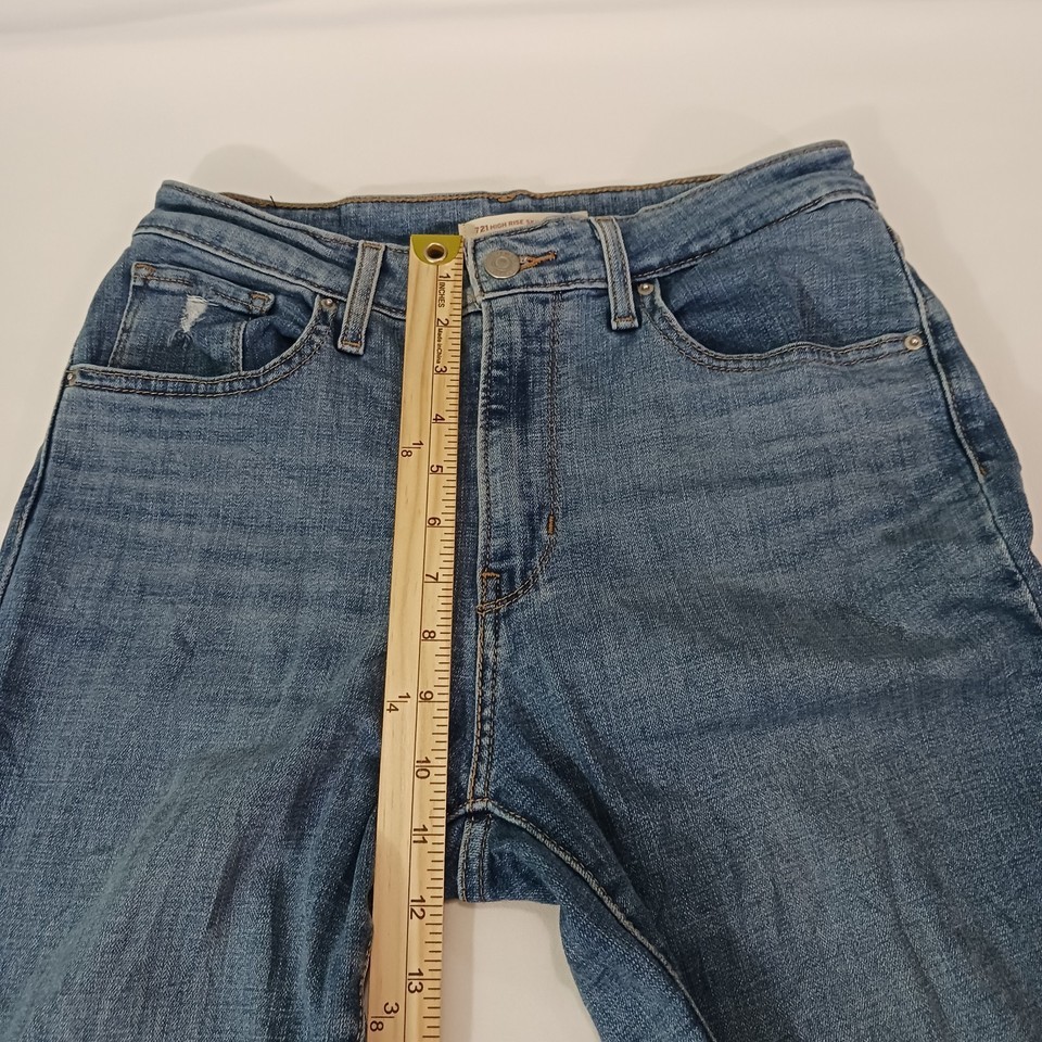 With a waist size of 28 inches and an inseam of 32 inches, these jeans are perfect for women who wear size 29. The high-rise waist and skinny style flatter your figure, while the denim fabric type and closure zipper add a touch of edginess. Whether you're dressing up or down, these Levi's 721 jeans are a must-have for any fashion-forward woman.