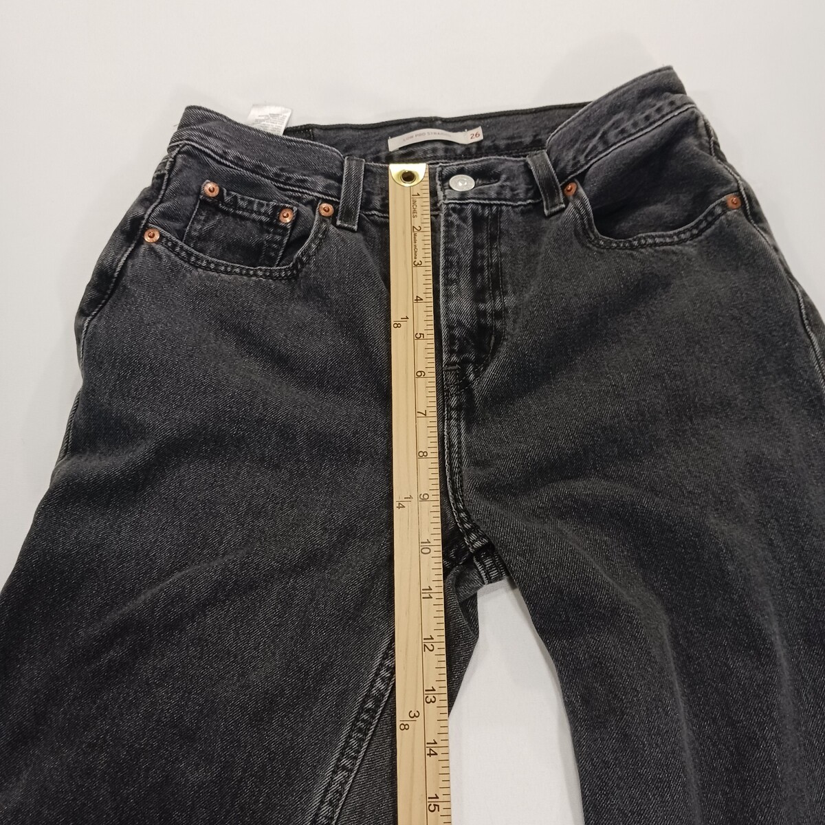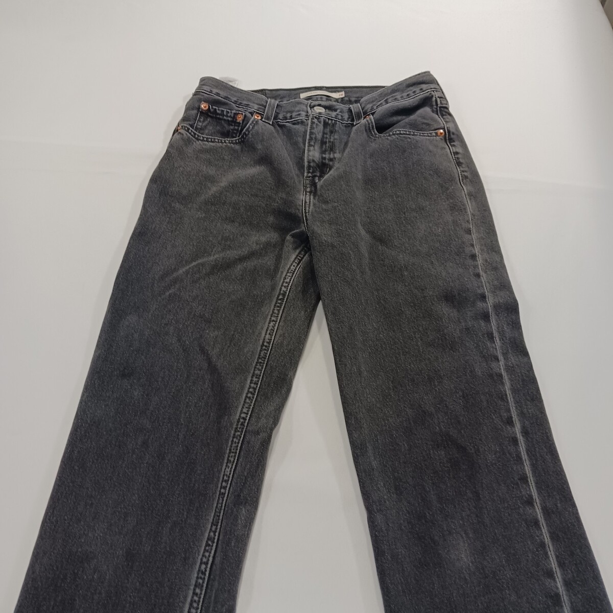 The product is a pair of Levi's Low Pro Straight Women's Black Cotton Jeans in size 26 with a 30-inch inseam. These jeans feature a solid black color, a relaxed fit, and a mid-rise waist. Made with denim fabric, they are machine washable and easy to care for. The jeans have a zip and button closure, a 5-pocket design, and are designed for comfort and style, making them a versatile choice for the winter, fall, and spring seasons. Perfect for everyday wear, these Levi's jeans are a classic addition to any woman's wardrobe.