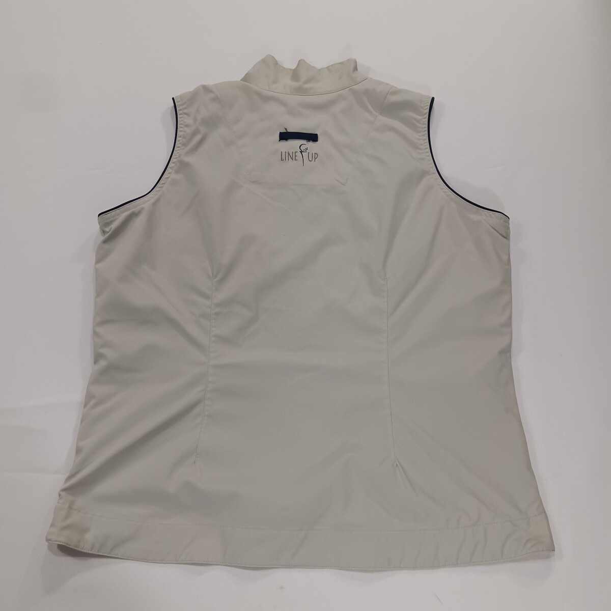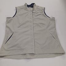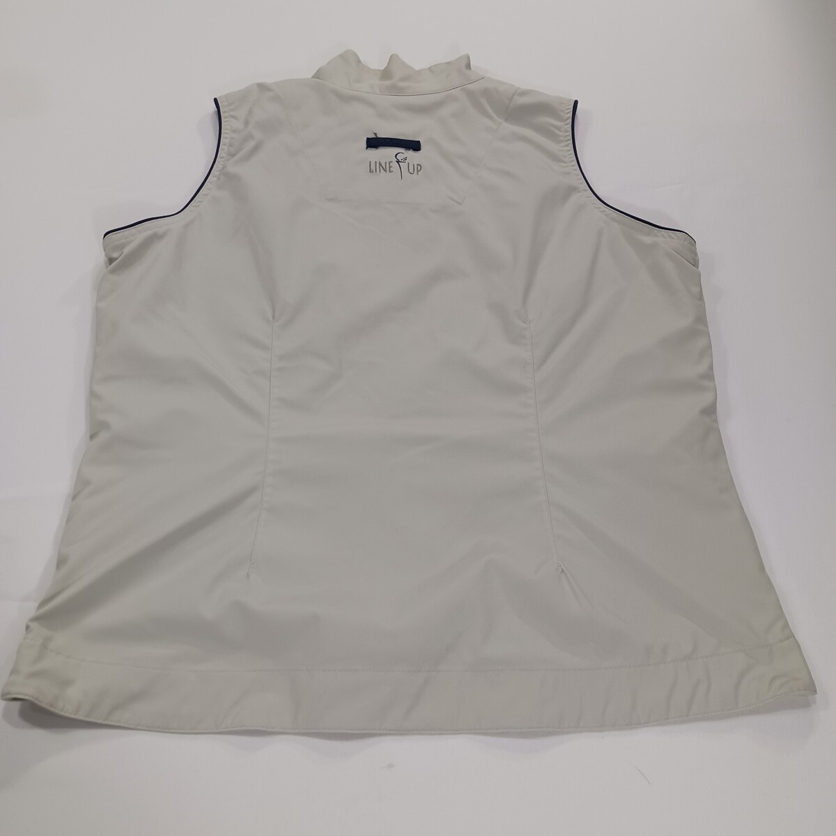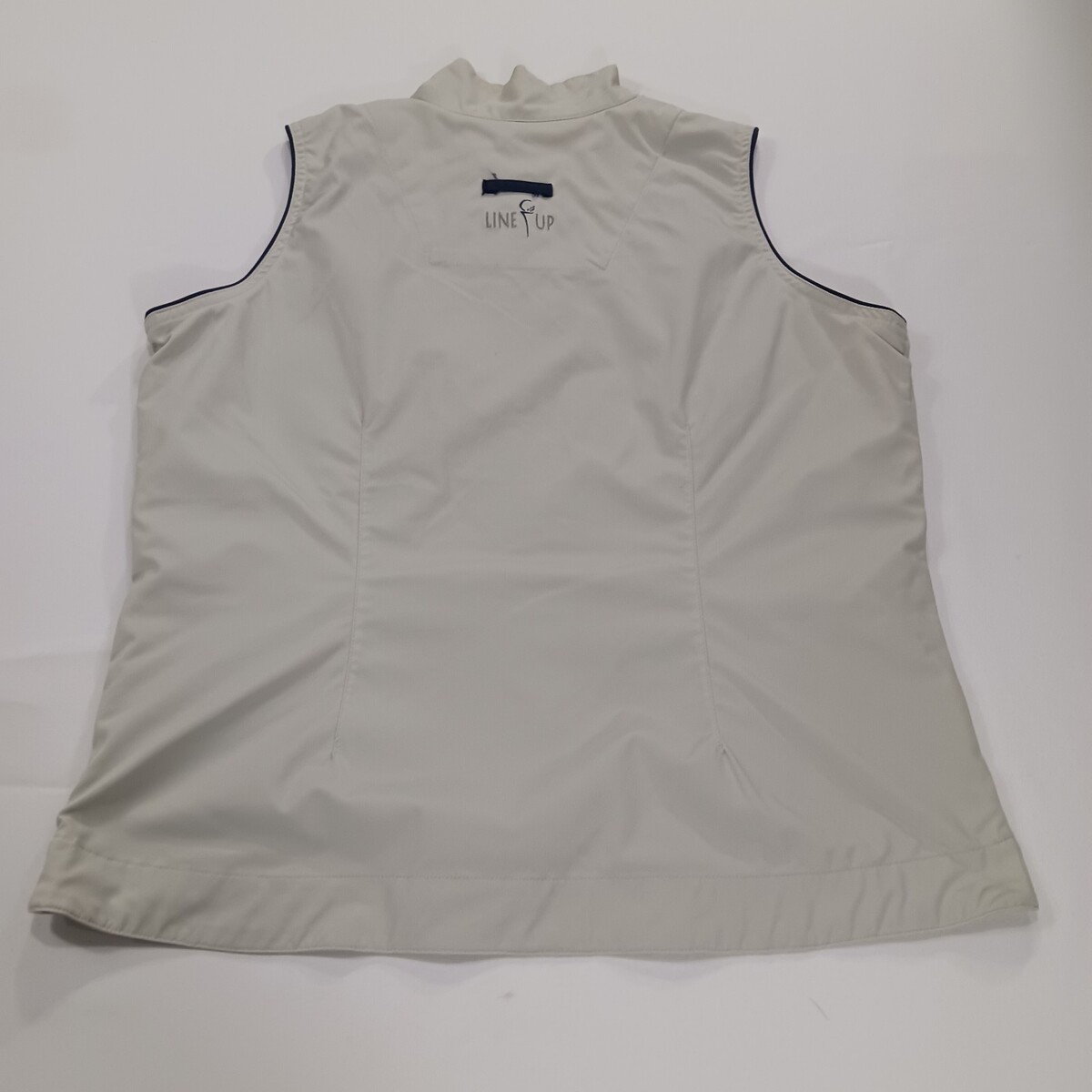 The Line Up For Sports Men's Beige/Cream Full Zip Sleeveless Golf Vest in size Medium with a chest measurement of 41 inches is a stylish and functional activewear piece perfect for golf enthusiasts. Made from a comfortable cotton blend outer shell material, this vest features a solid beige color and a vintage theme, adding a classic touch to your sports wardrobe. The button closure, lined interior, and sleeveless design make it practical and suitable for active occasions such as golfing. Representing the brand Line-Up, this vest is a great addition to any unisex adult's collection for those who appreciate quality athletic apparel.