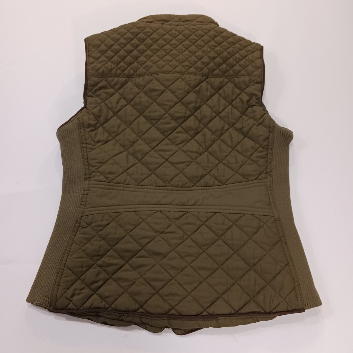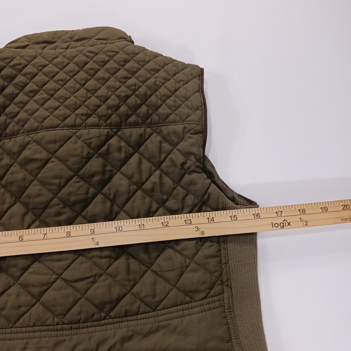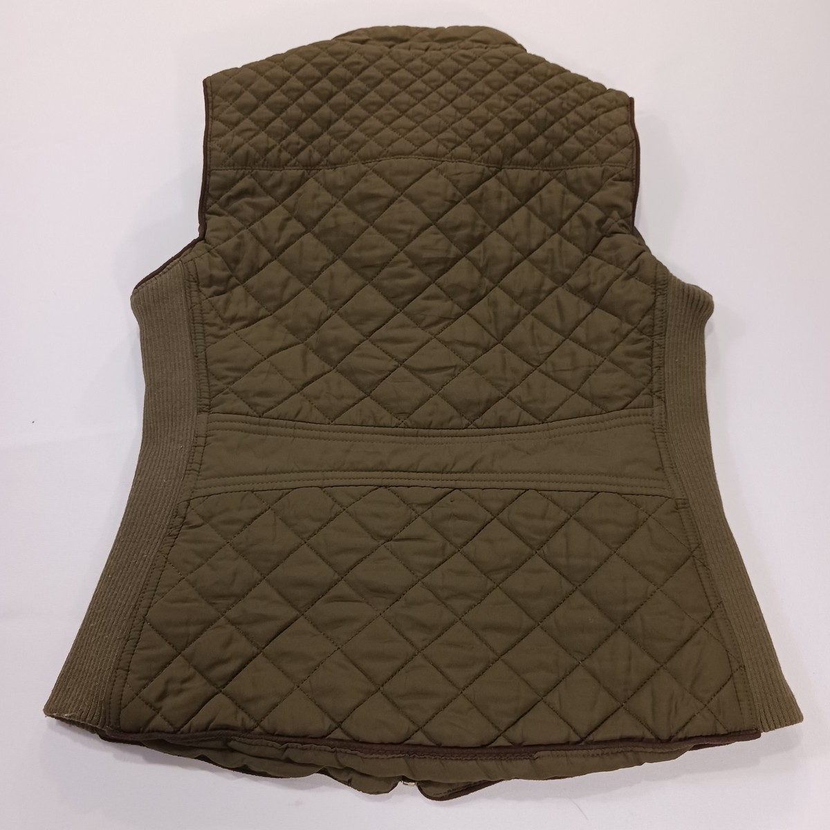The Love Tree Women's Size Small Vest is a stylish and versatile addition to any wardrobe. This green quilted vest features gold accents, a full zip closure, and a mock neck collar for added warmth. With its mid-length design and sleeveless style, this vest is perfect for various occasions such as travel, parties, casual outings, workwear, and business events. Made from polyester lining and rayon fabric, this vest offers both comfort and style, making it a must-have piece for the fashion-forward woman.