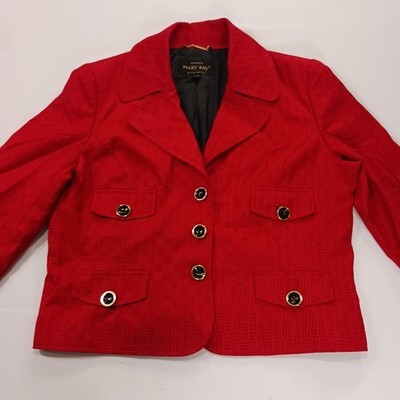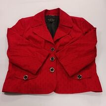 The Mary Kay By Twinhill Women's Red 3-Button Cropped Blazer Jacket is a stylish and versatile piece for a business setting. Made from a comfortable cotton blend, this blazer features a solid red color and long sleeves with a button closure. The cropped length and pockets add practicality to the classic blazer style, making it a fashionable choice for any professional look. Perfect for Women's size L, this Mary Kay blazer embodies a blend of style and functionality.