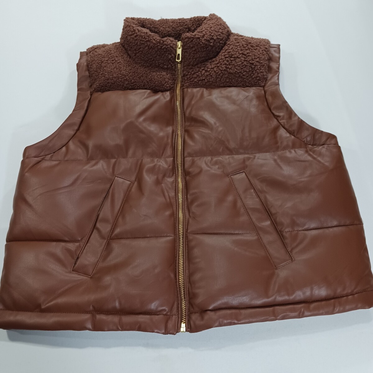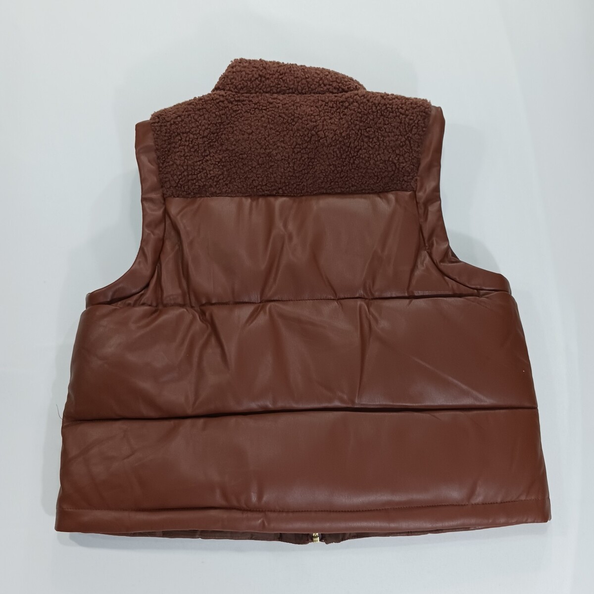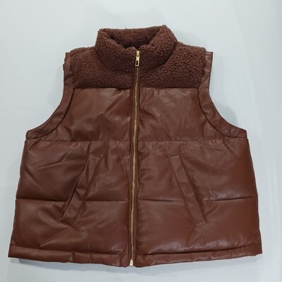 Maurices RN#51783 Girls Brown Faux Leather Full Zip Puffer Vest Size Medium