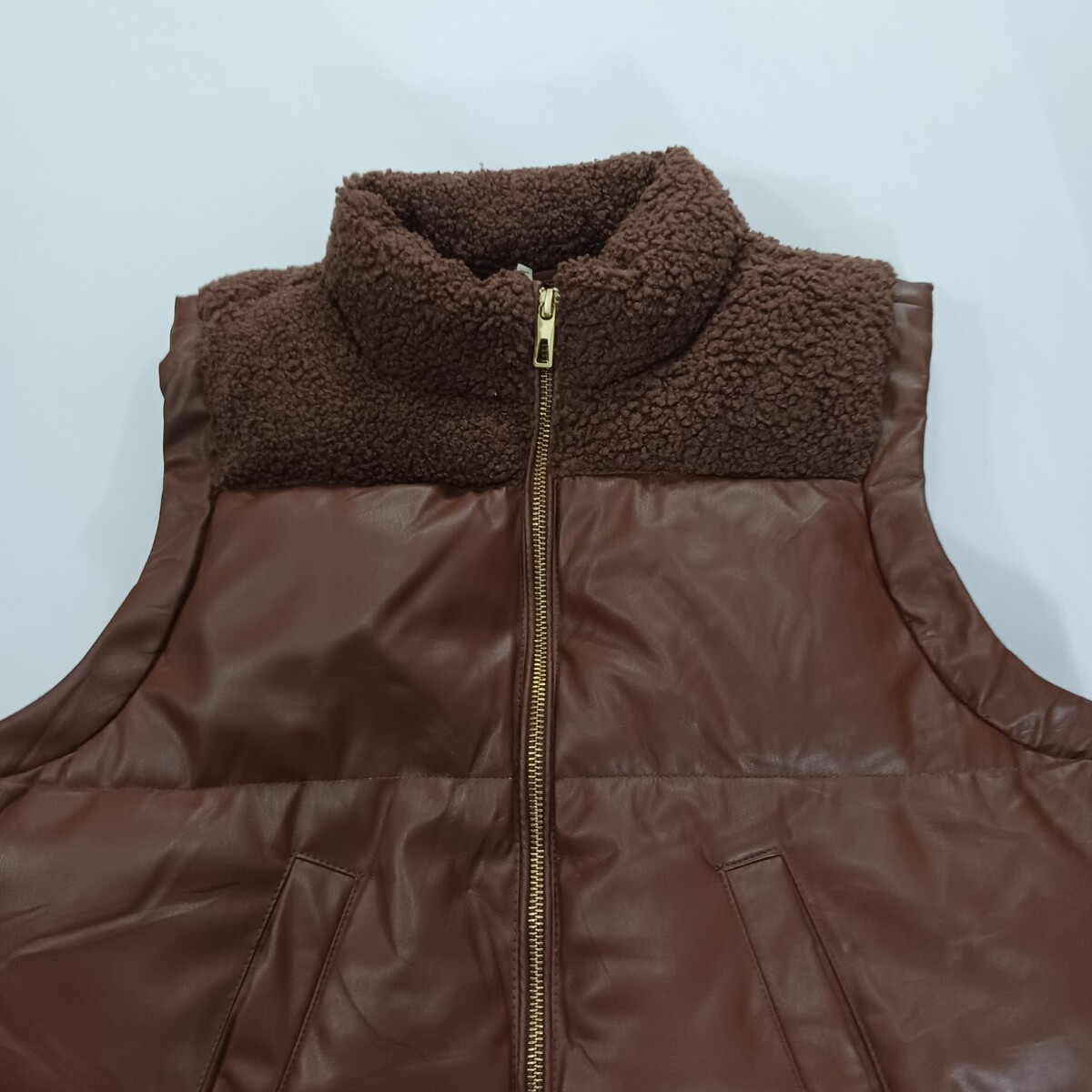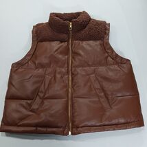 • Maurices RN#51783 Girls Brown Faux Leather Full Zip Puffer Vest Size Medium image 3