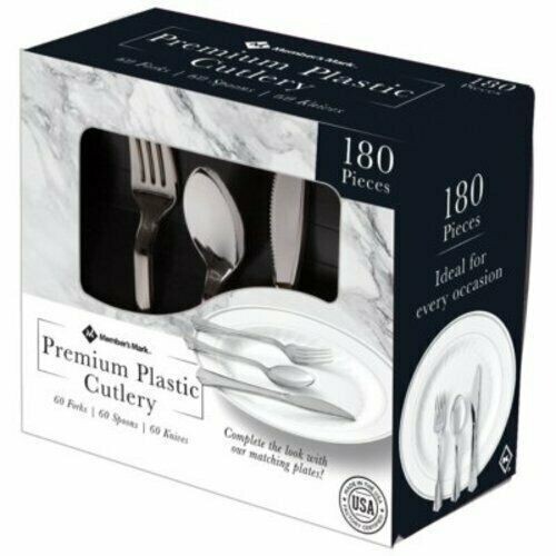 Add a touch of elegance for your gathering with Member's Mark™ Premium Silver Cutlery. The premium strength plastic cutlery has the shine of real silver, and will elevate the style of any tablescape. The package comes with 60 forks, 60 knives and 60 spoons.