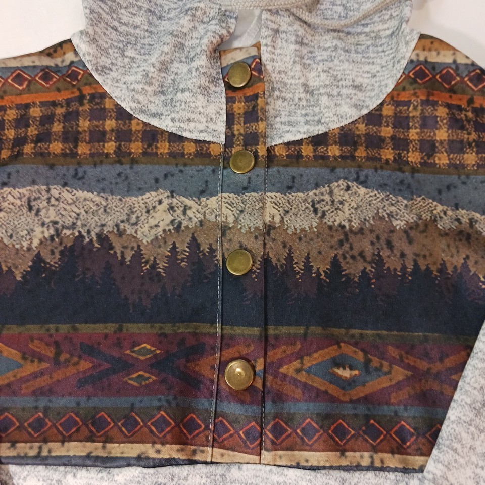 • Men 1/4 Snap Button Cotton Gray & Brown Pullover Drawstring Hoodie Sweatshirt XL image 3