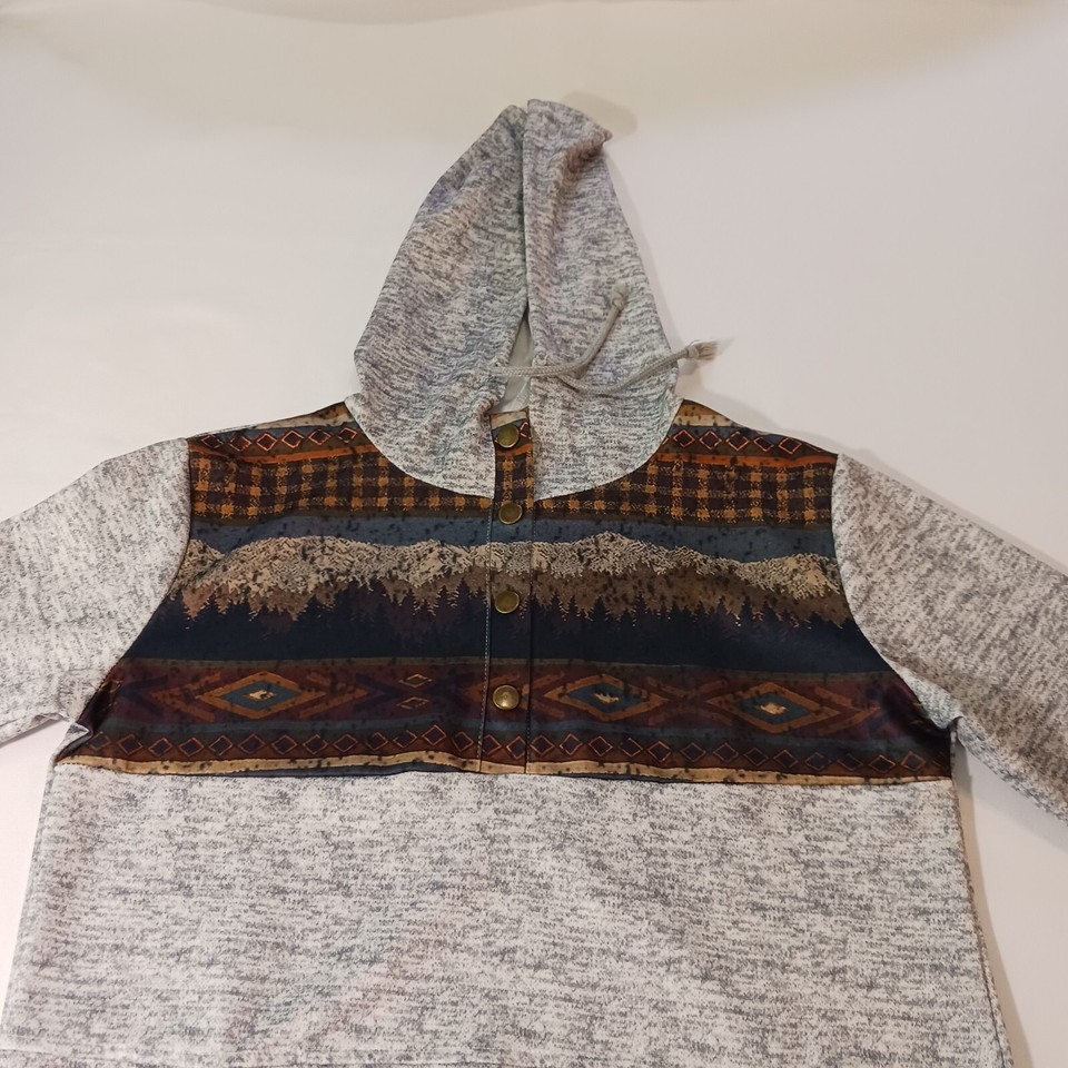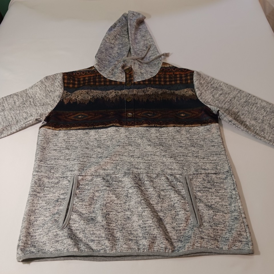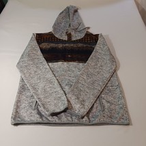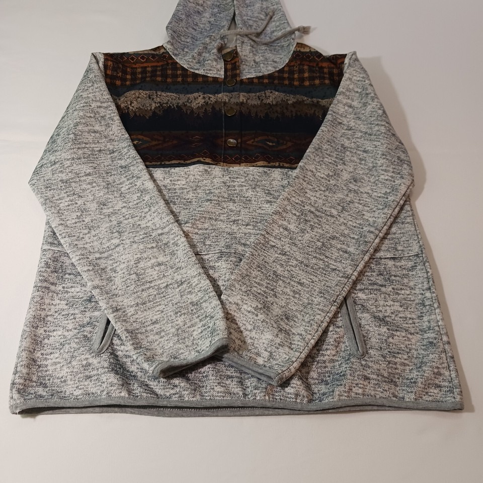 • Men 1/4 Snap Button Cotton Gray & Brown Pullover Drawstring Hoodie Sweatshirt XL image 1
