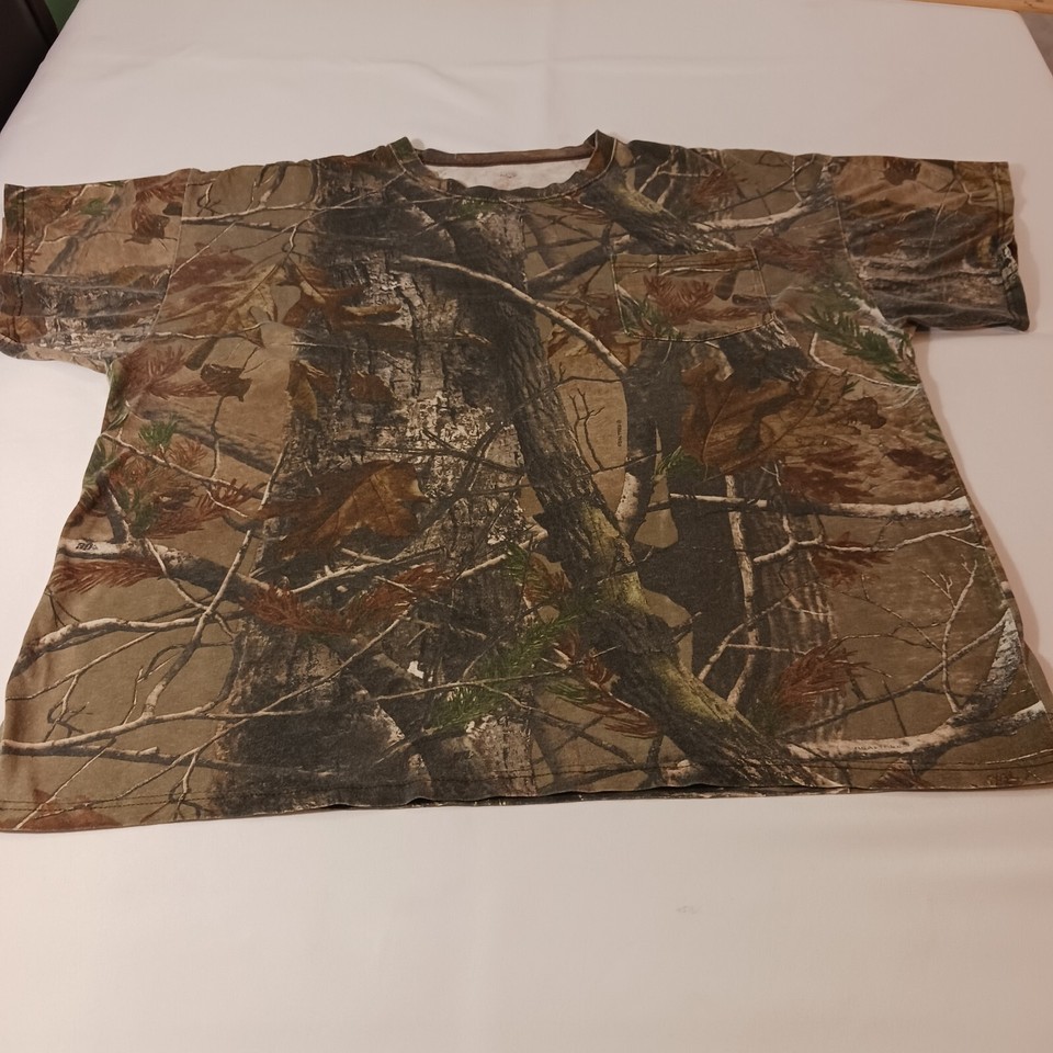 Men's Brown Green Forest Hunting Camping Stretch Camo T-Shirt Chest Size 52"
