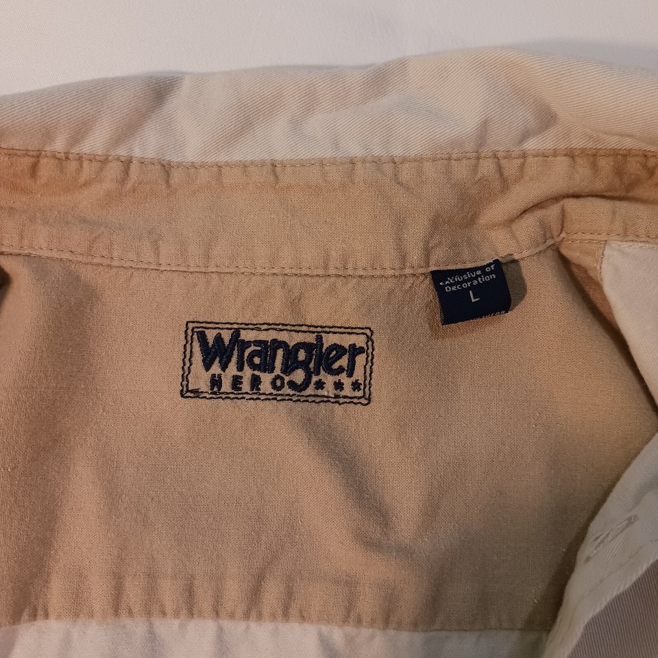 The shirt is a size large and fits in a classic style. It is machine washable for easy care. The shirt is part of the Wrangler Hero product line, which embodies American, outdoor, and classic themes. Don't miss out on adding this versatile shirt to your wardrobe today!