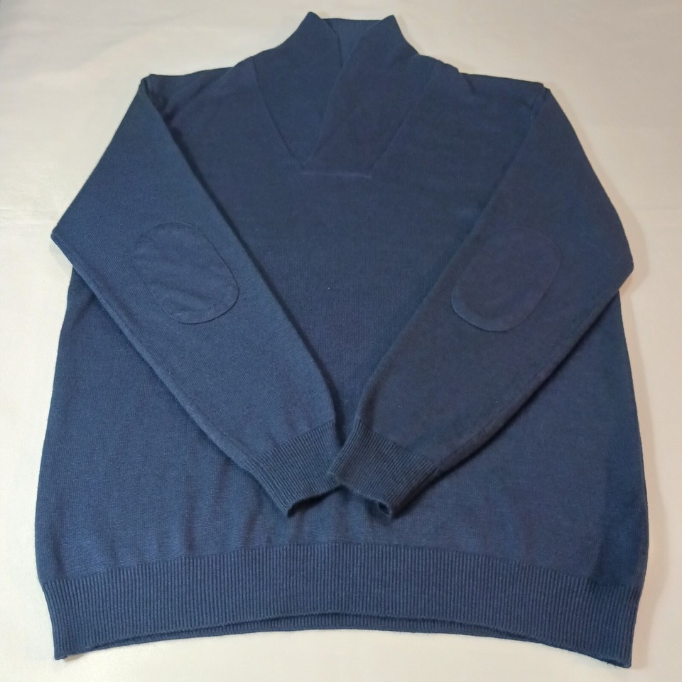 This Paulo Solari sweater is a must-have for any modern man's wardrobe. Crafted with a solid blue color and elbow patches, this pullover is perfect for any occasion. The shawl collar and long sleeves add to its sophistication, making it a versatile piece for any season.