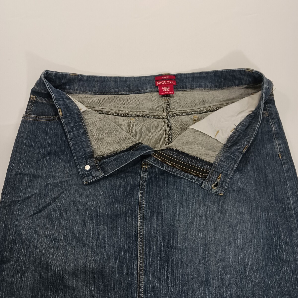 Merona RN#17730 Women's Blue Cotton Blend Stretch Denim Skirt Size 14 Waist 34"