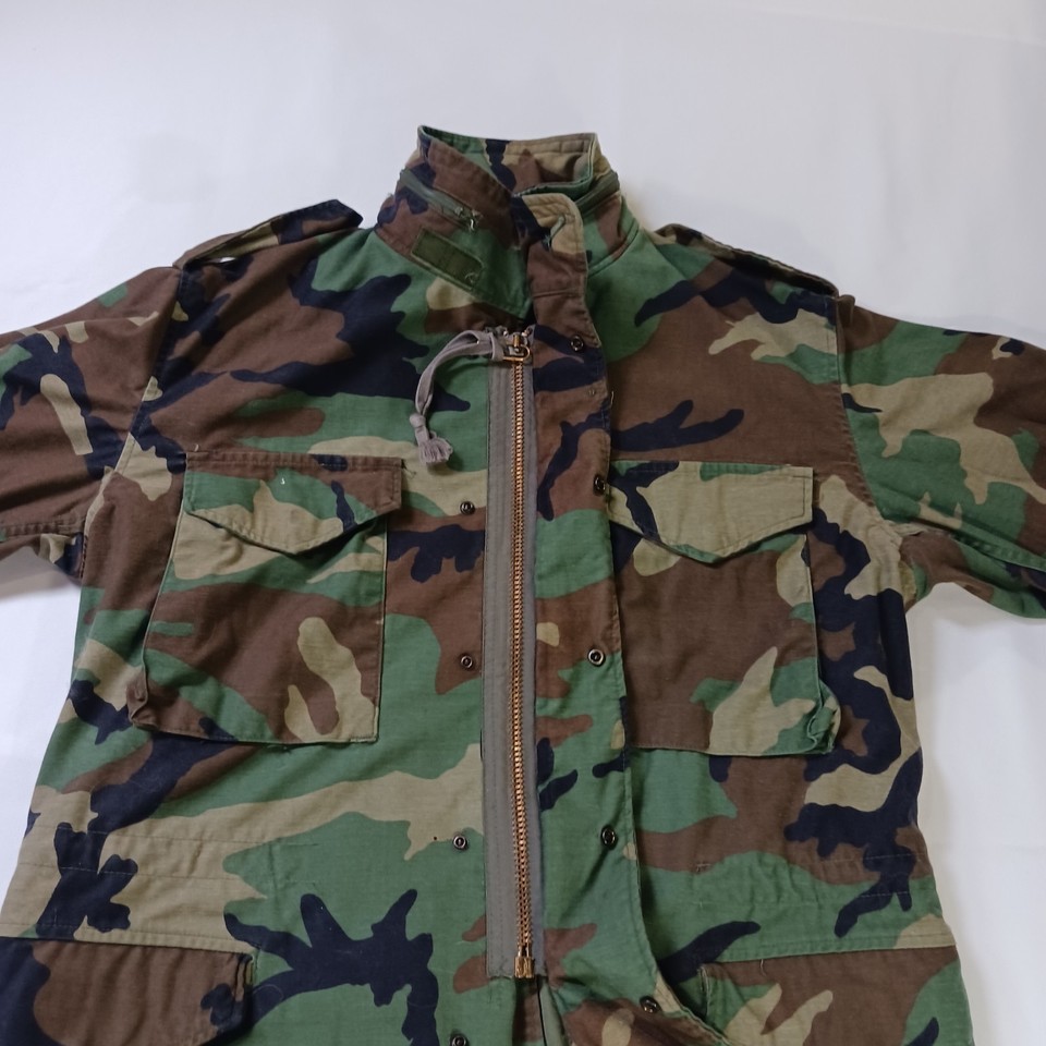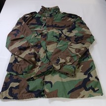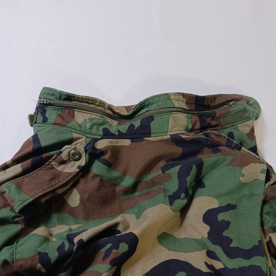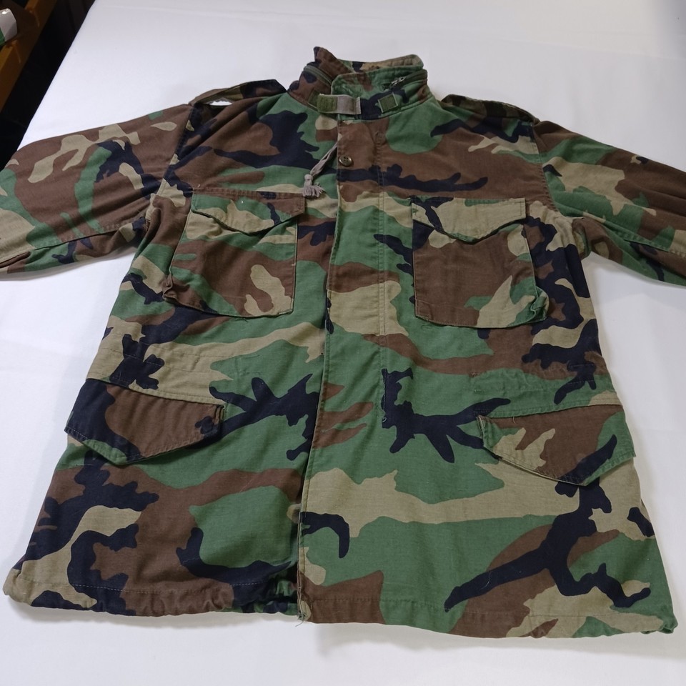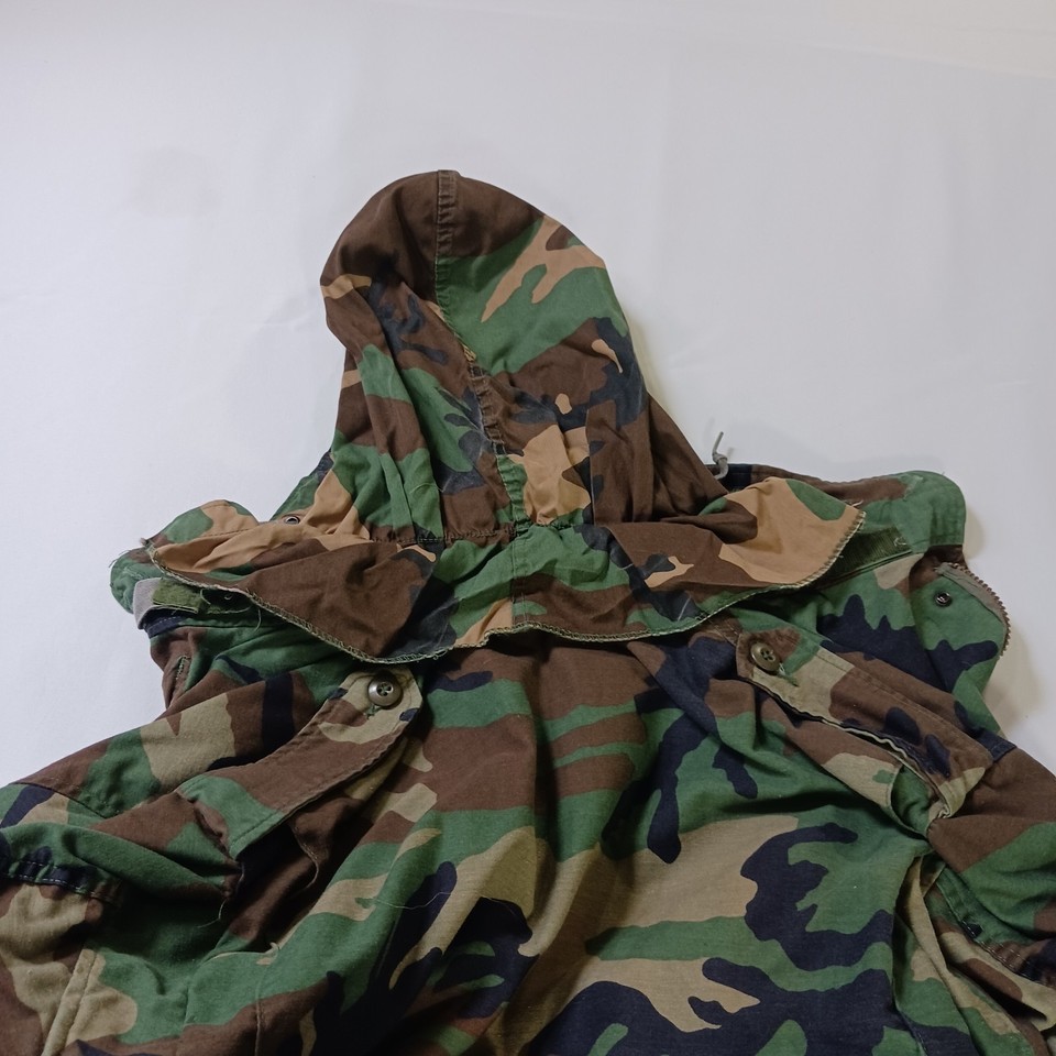This Military Field Jacket in Woodland Camo is a versatile and practical choice for cold weather. Made with durable nylon outer shell material and insulated with polyester, this jacket is designed for durability and warmth. The camo pattern adds a stylish touch, while features like a lined hood and snap closures make it functional for various occasions from casual to workwear. Perfect for outdoor activities like hiking, riding, and hunting, this jacket in men's medium size is machine washable for easy care.