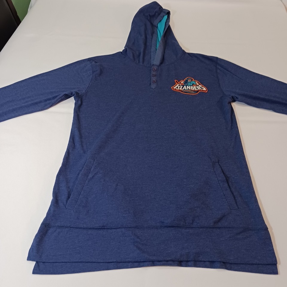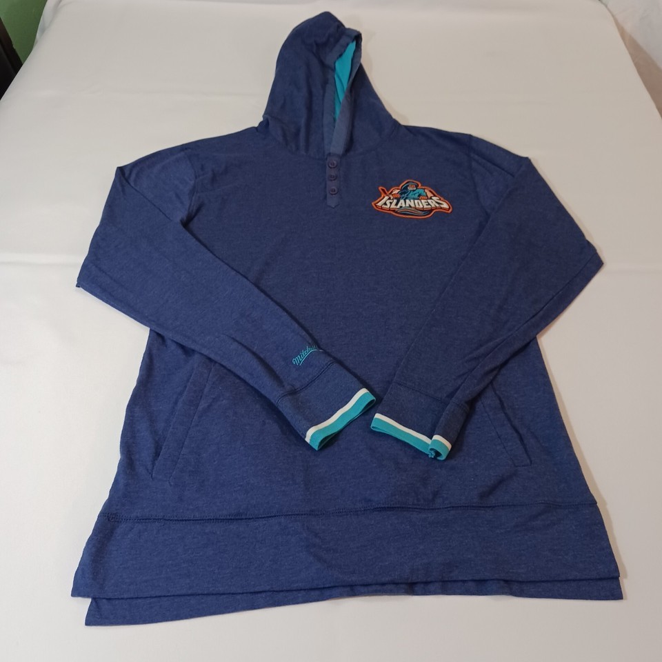 Mitchell & Ness ISLANDERS Women's Blue 1/4 Button Hoodie Pullover Sweatshirt M