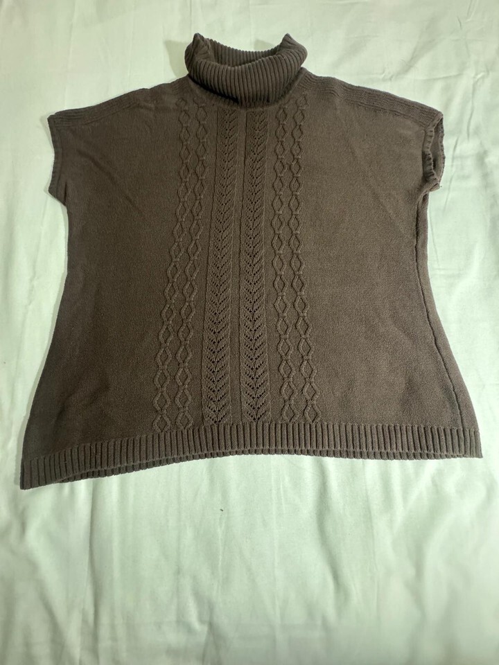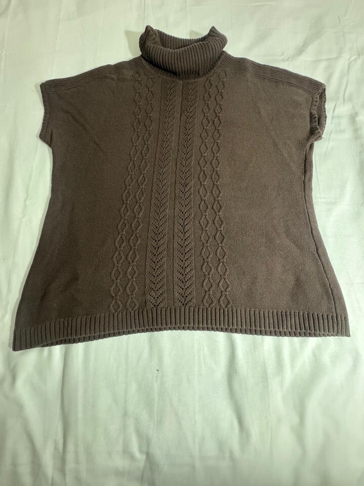 The Motto Your Style Mantra women's sweater in size XL features a solid brown color with a square neckline and sleeveless design. Made from a blend of cotton and acrylic in knit fabric, this pullover top offers a regular fit for comfort. The sweater is designed with stretch properties, making it a versatile and stylish addition to any woman's wardrobe.