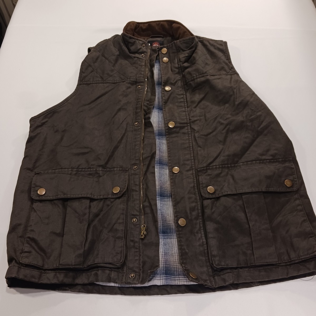 • Mountain & Isles Men's 2XL Brown Waxed Canvas Vest Flannel Lined Full Zip Pocket image 9