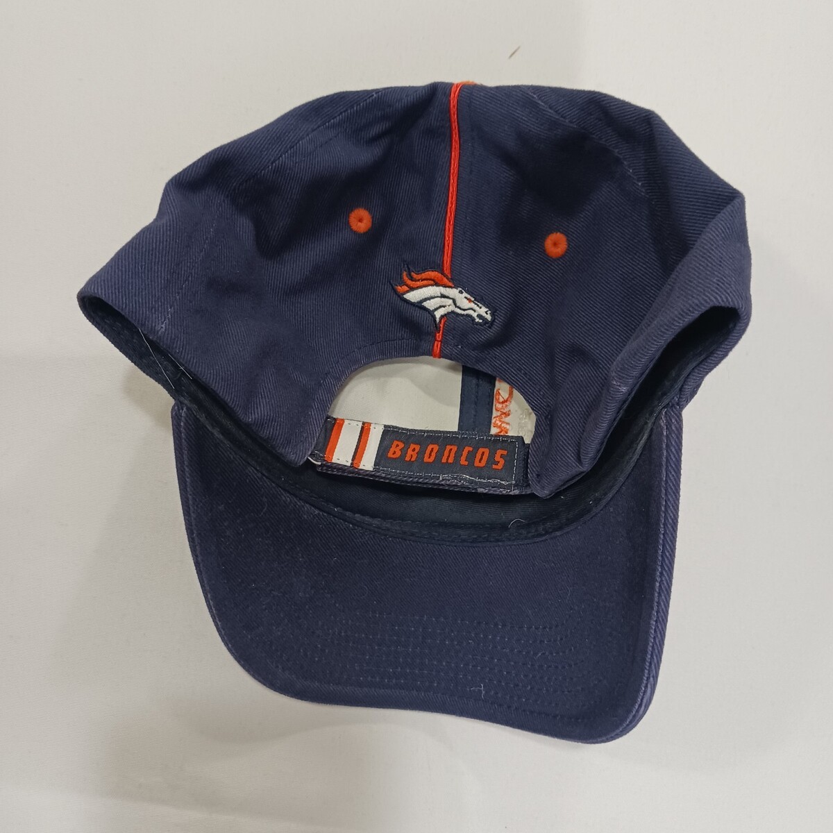 The NFL Denver Broncos Back Strap Cotton Blue Baseball Cap Hat is a stylish and comfortable accessory for fans of the team. Made of stretchy cotton material, this one-size hat features a solid blue color with the iconic team logo on the back strap. The baseball style cap is perfect for both men and women, making it a versatile and perfect addition to any sports-themed outfit. Proudly display your team spirit with this high-quality NFL cap.