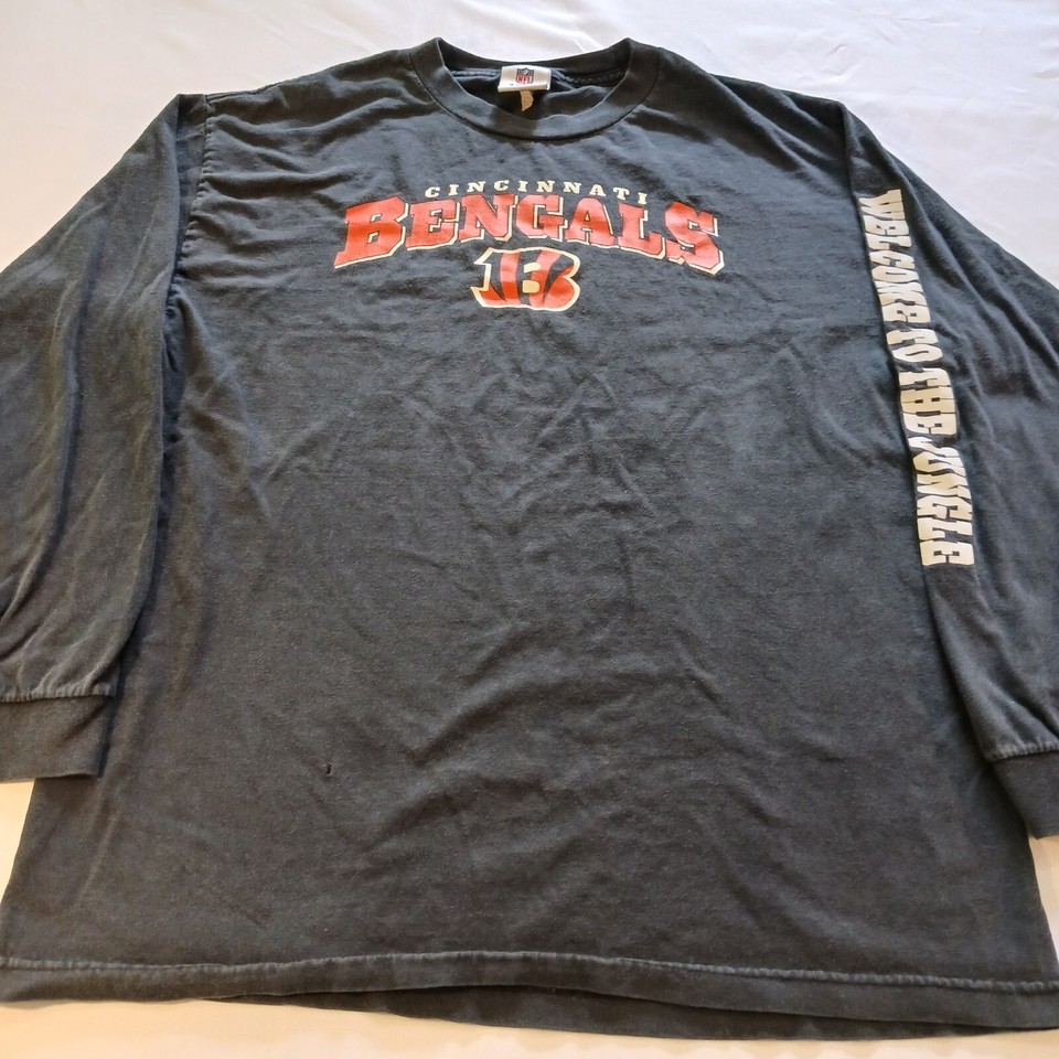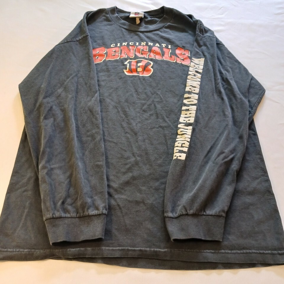 Show your support for the Cincinnati Bengals with this stylish and comfortable long sleeve shirt. Perfect for football season, this team apparel is made for men and comes in size large. The shirt is black with gray detailing and features the iconic Bengals logo on the front.