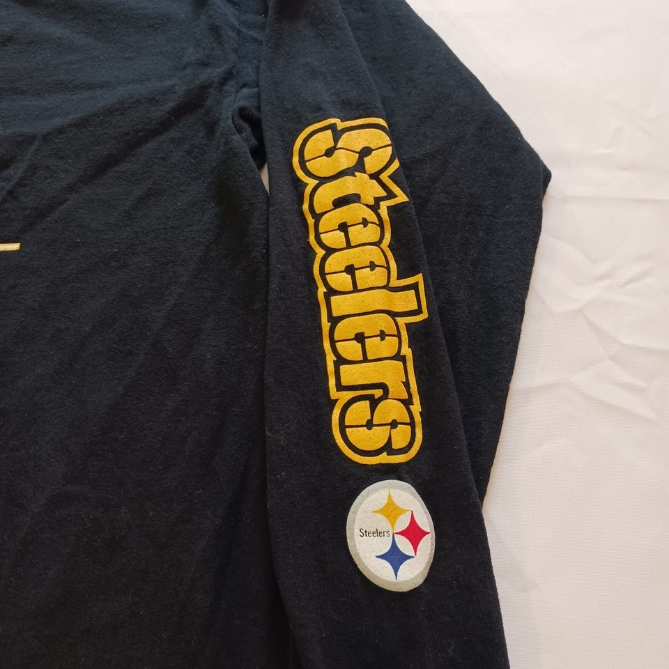 NFL Team Apparel Men's Black Pittsburgh Steelers Long Sleeve Cotton T-Shirt L