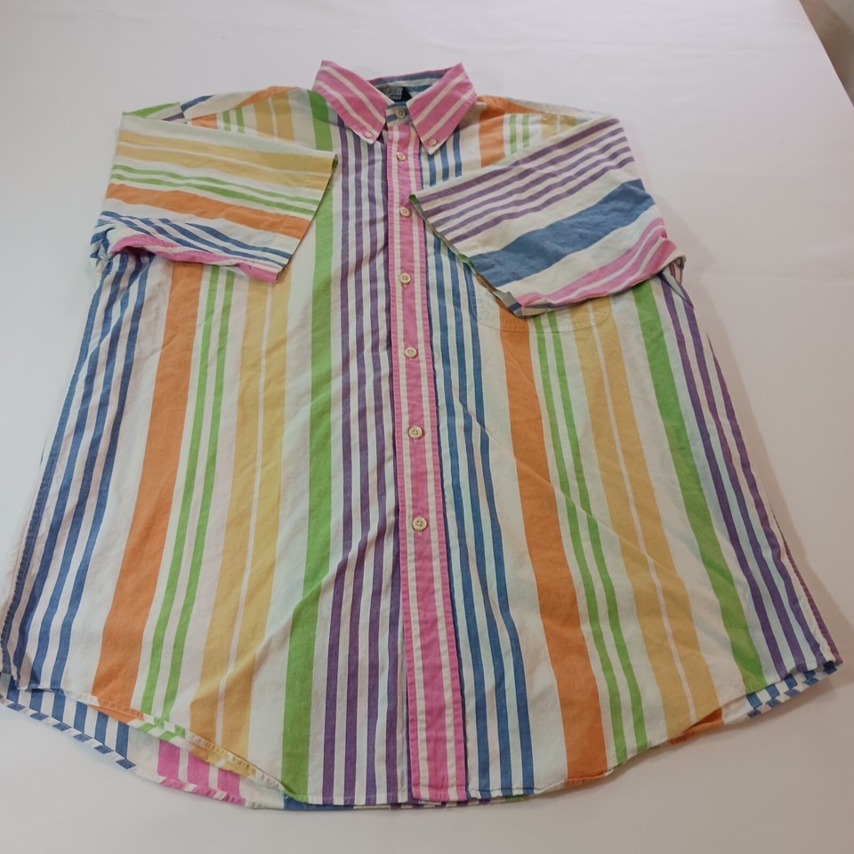 This Nautica shirt is a must-have for any fashion-forward man. The shirt features a striking multicolor striped pattern that adds a bold touch to any outfit. It has a collared neckline with a button-down closure and long sleeves that offer a classic, timeless look. The shirt is made of high-quality cotton material that ensures comfort and durability.