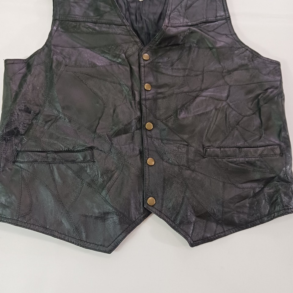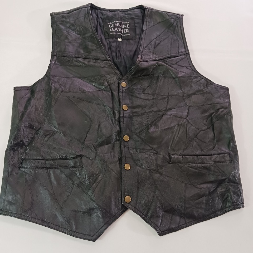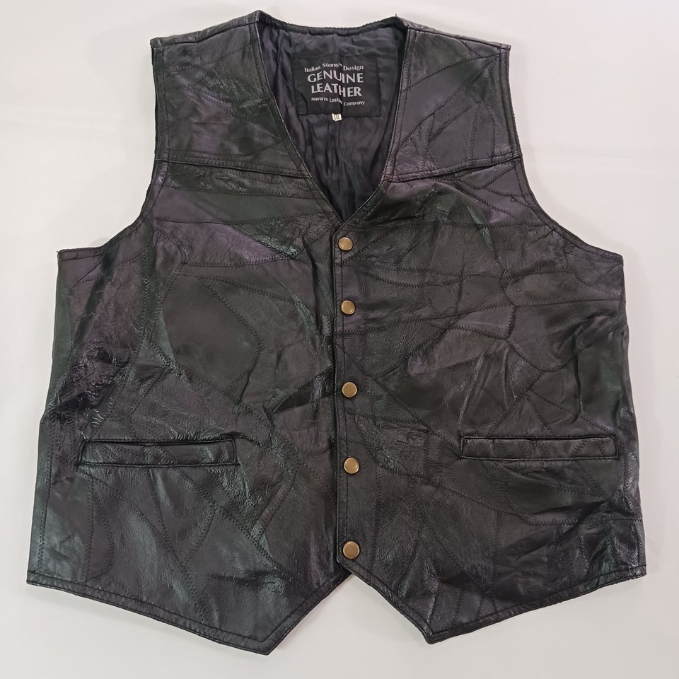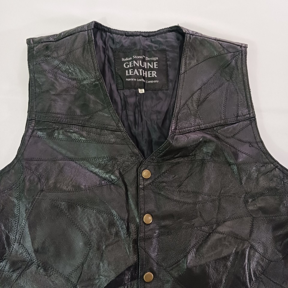 Elevate your wardrobe with the Navarre Leather Company Men's Italian Stone Design Genuine Leather Black Vest. Crafted for those who appreciate quality and style, this vest is a timeless addition to any ensemble. The luxurious genuine leather offers a supple feel, while the classic black hue ensures versatile pairing with your favorite shirts and jackets. Designed with a regular fit in a size 2XL, this vest strikes the perfect balance between comfort and sophistication. The understated Basic Jacket style, accented with an Italian theme, lends a refined yet edgy touch to your outfit, making it ideal for both casual and more formal occasions.