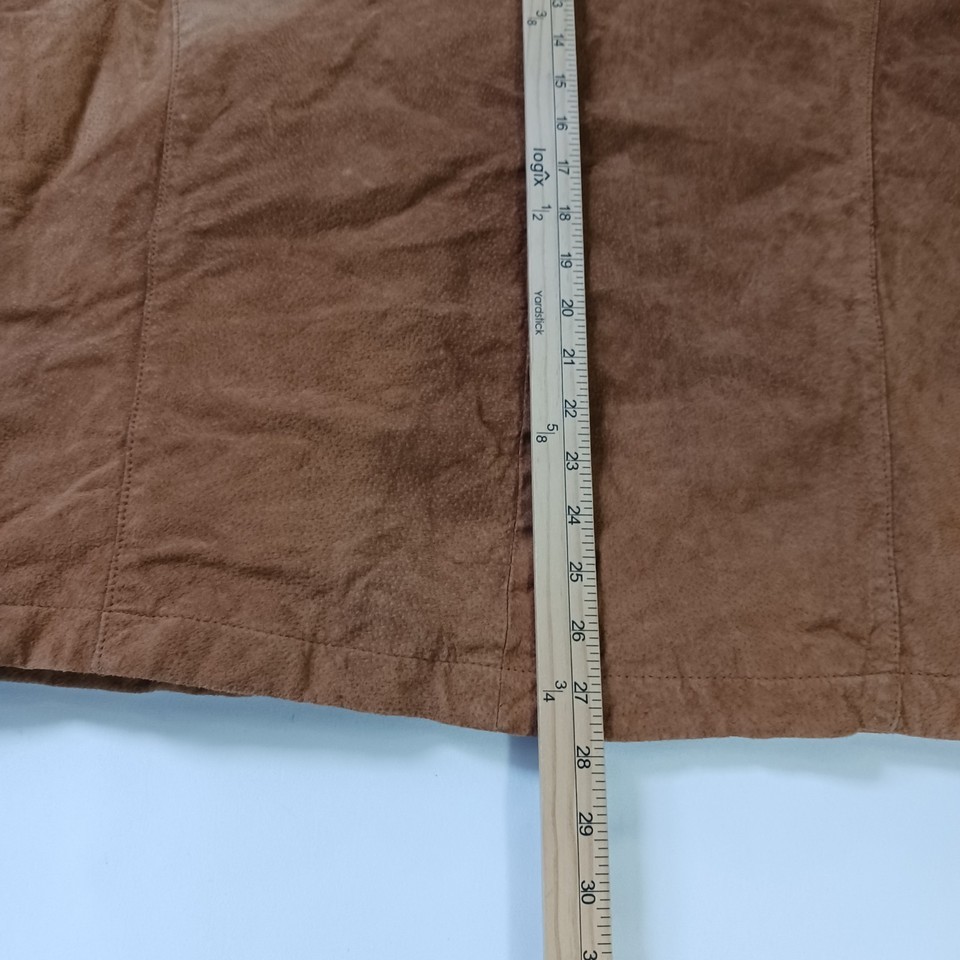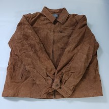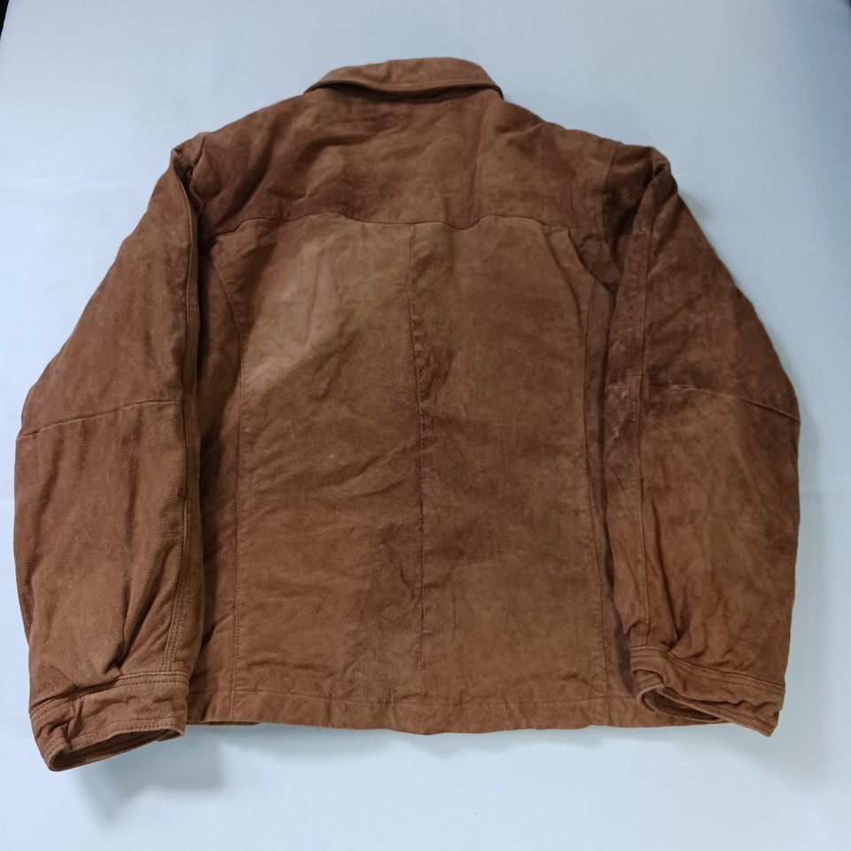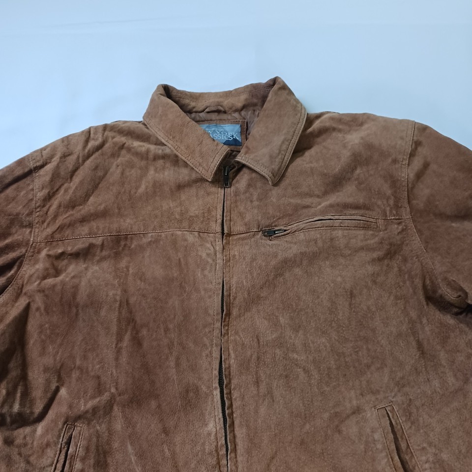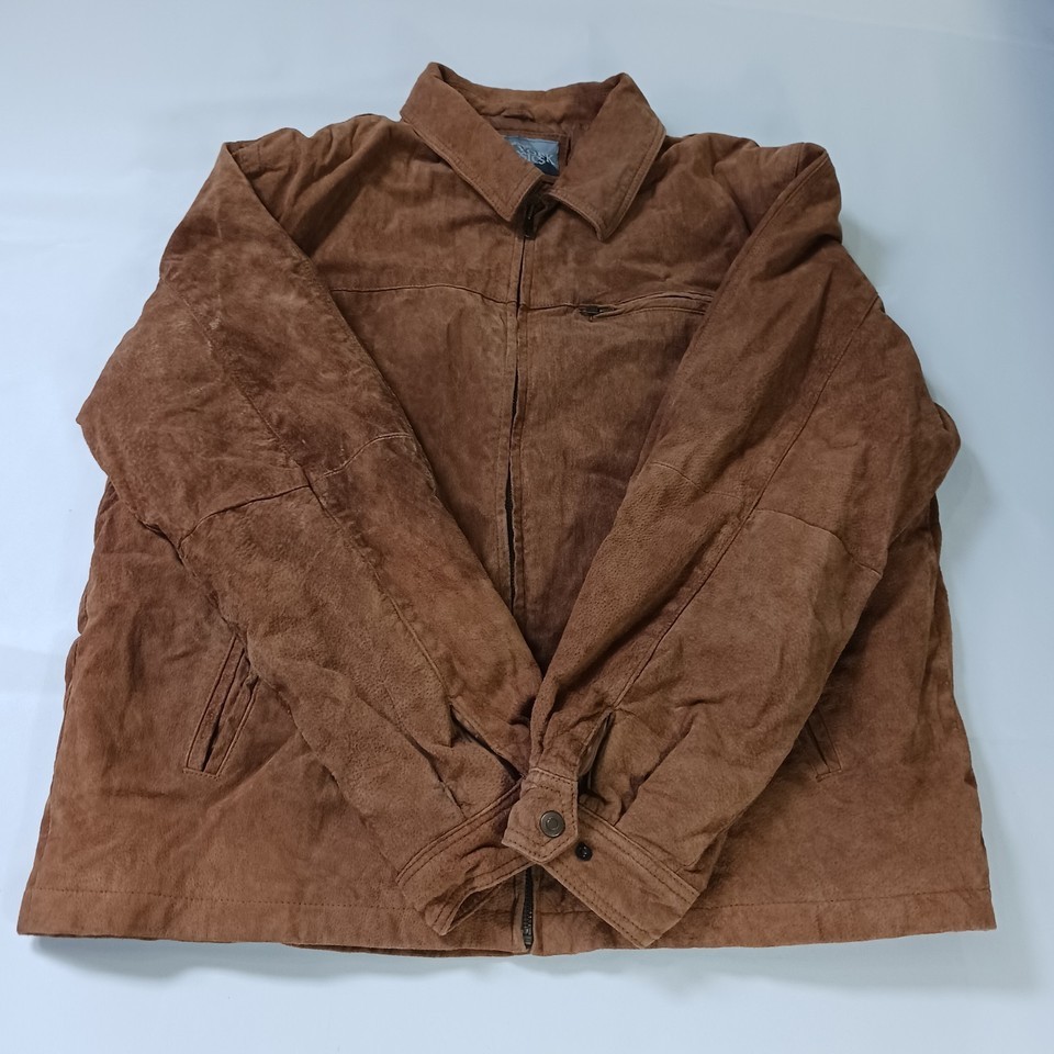 The New York Classics RN#82814 Men's Brown Genuine Leather Full Zip Jacket in size XL is a stylish and classic outerwear piece for men. Made from high-quality leather with a solid pattern, this jacket features long sleeves and a full zip closure for a convenient and easy wear. The jacket has a durable polyester lining and is designed by the reputable brand New York Classics, ensuring both style and quality. This versatile jacket in a timeless brown color can be a perfect addition to any man's wardrobe, suitable for various occasions.