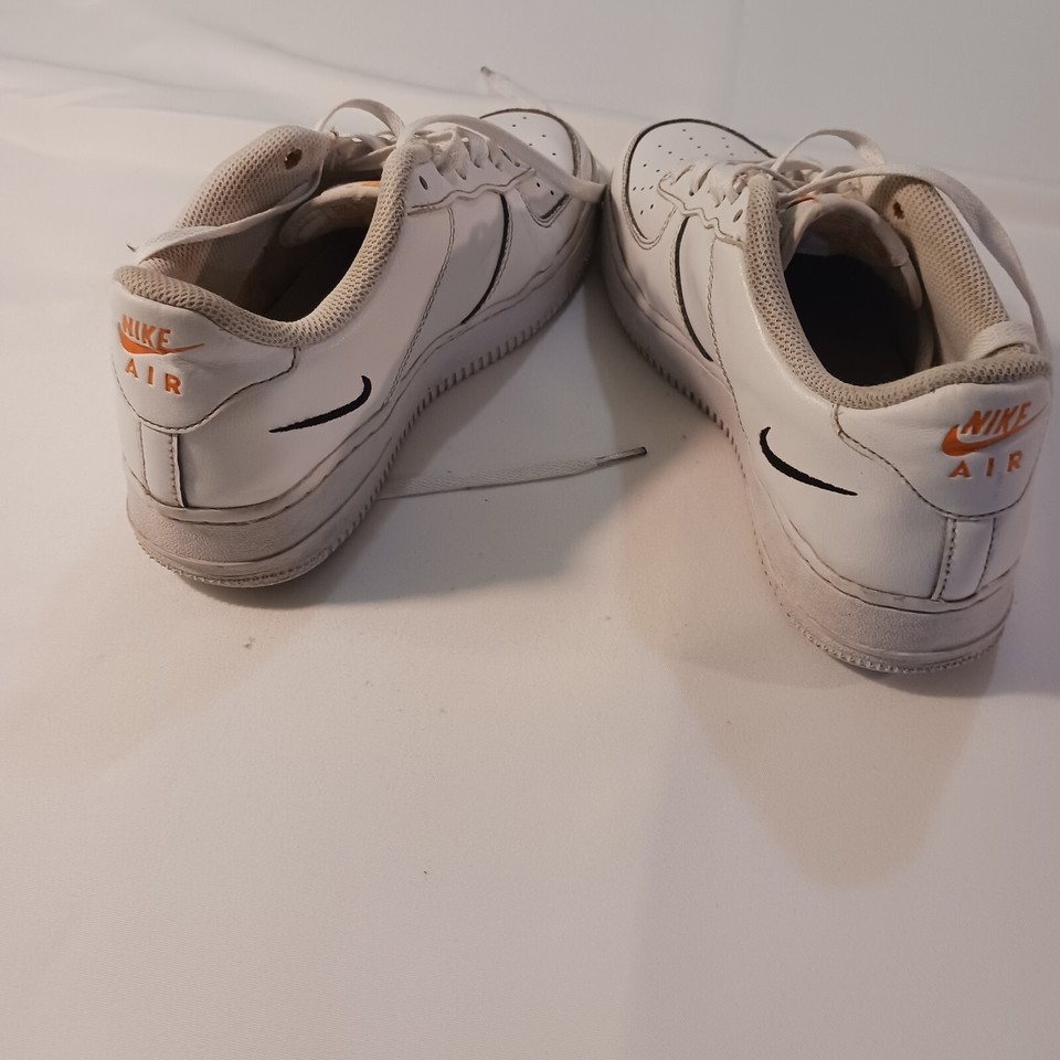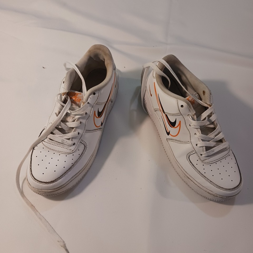 Up for grabs are these stylish Nike Air Force 1 GS trainers, perfect for boys and girls. The shoes feature a sleek white colorway with a multi swoosh design, making them a versatile addition to any wardrobe. With a leather upper and a comfortable sneaker style, these trainers are perfect for everyday wear or as a statement piece. The shoe comes in a UK size 3.5 and US size 7, with a product line that speaks for itself. Take advantage of this opportunity to own a pair of Nike Air Force 1s today!