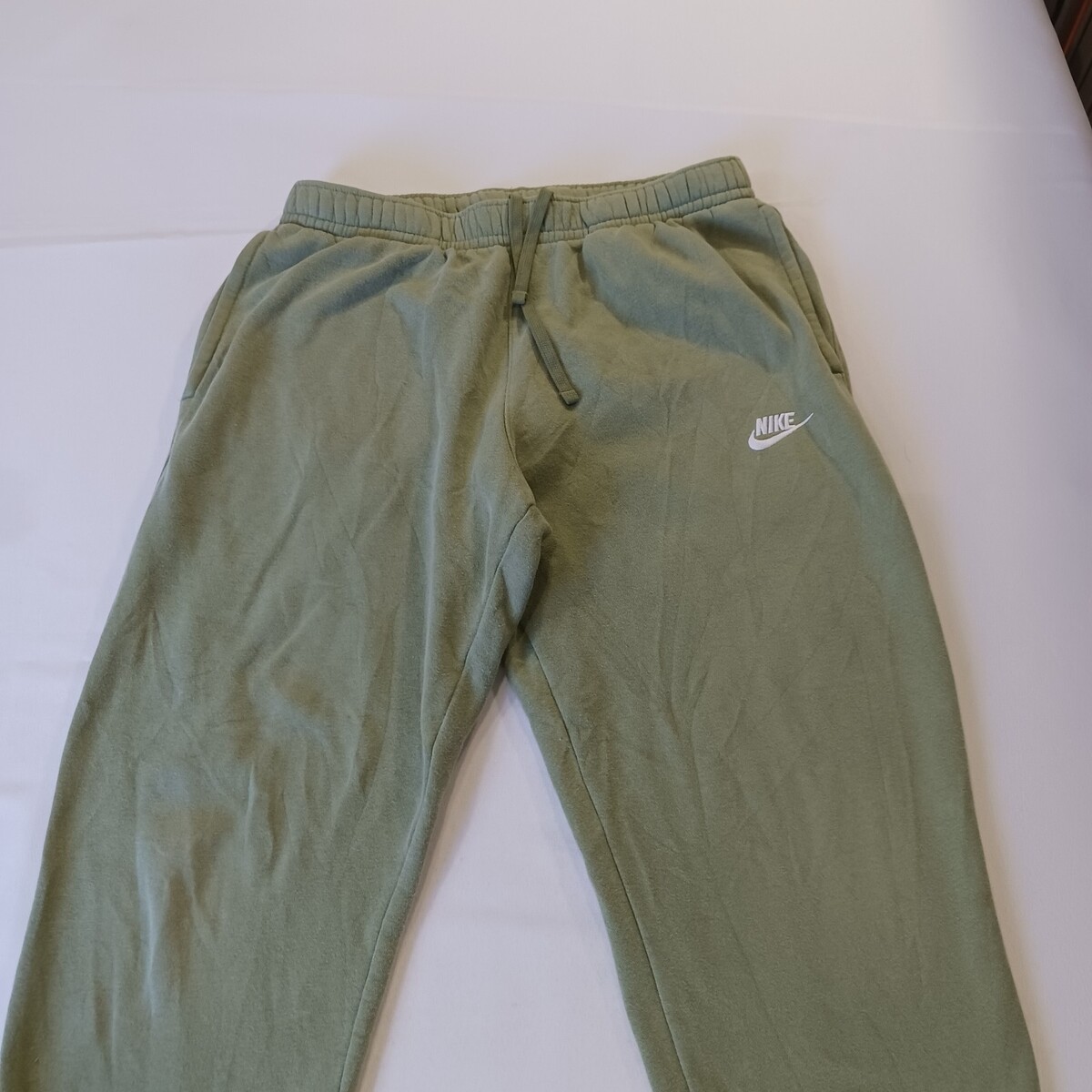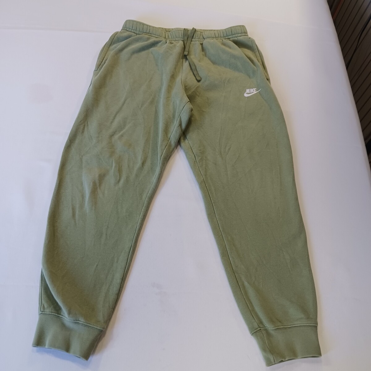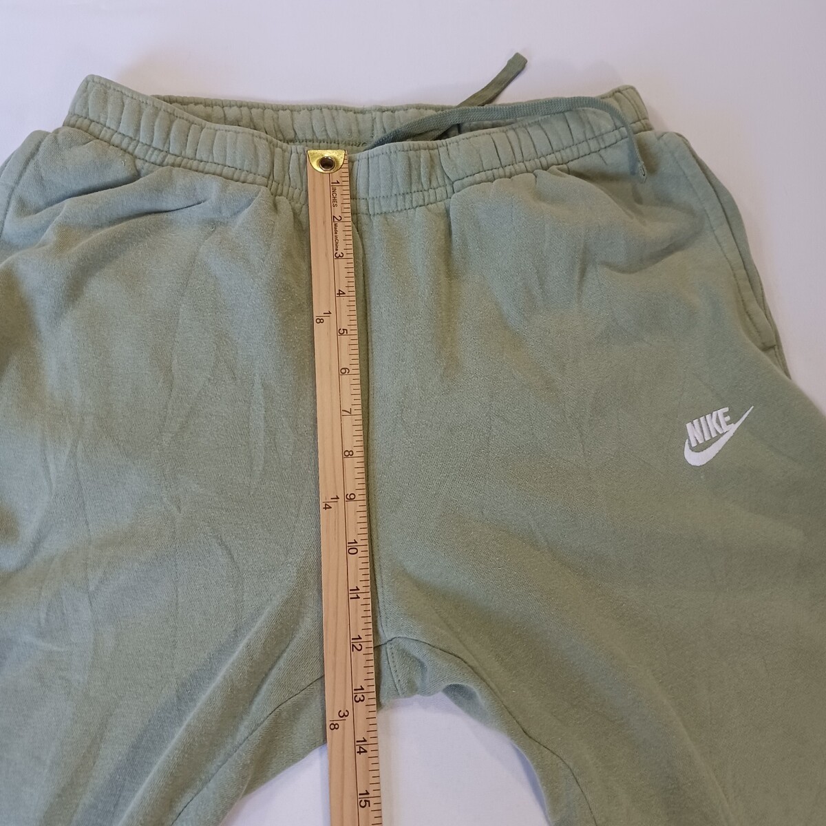 The Nike BV2671-386 Men's Green Cotton Club Fleece Joggers Sweatpants in size M are a stylish and comfortable option for men looking for activewear pants. Made of soft cotton fleece material, these sweatpants feature a solid green color with a white stripe, perfect for various occasions. With a waist size of 29 inches and an inseam of 27 inches, they offer a regular fit for a comfortable and flattering look. The Nike Fleece product line ensures quality and style, making these sweatpants a versatile addition to any man's wardrobe.