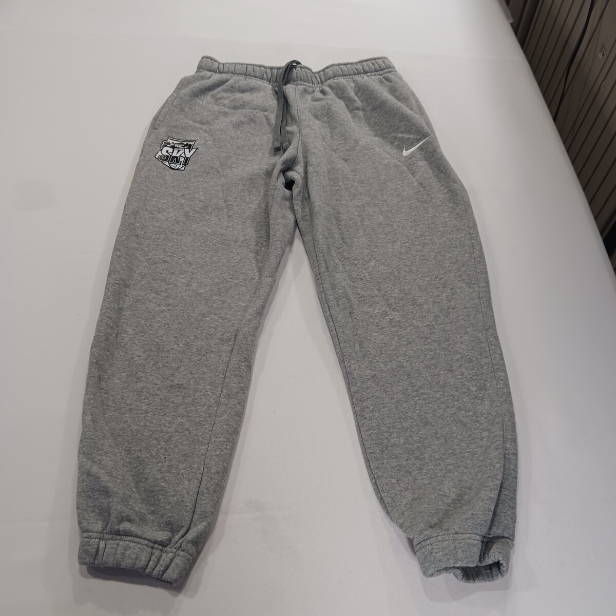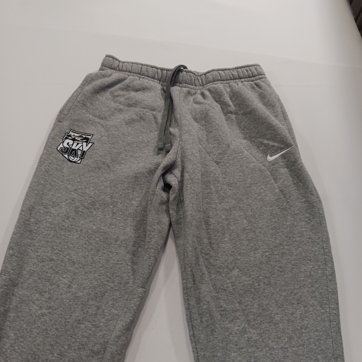 The Nike CJ1790-063 ARIZONA SKY Graphic Women's Club Fleece Training Joggers in Light Gray, Size M, are designed for active women looking for comfort and style. These joggers feature a drawstring closure, elastic waist, and tapered leg style for a modern fit. Made from a polyester-cotton blend fleece fabric, they are suitable for various activities such as gym training, walking, basketball, hiking, or running. With a solid gray color and Nike branding, these joggers are perfect for athleisure wear during any season. Easy to care for with machine washable instructions, these joggers offer both quality and performance for the modern woman on the go.